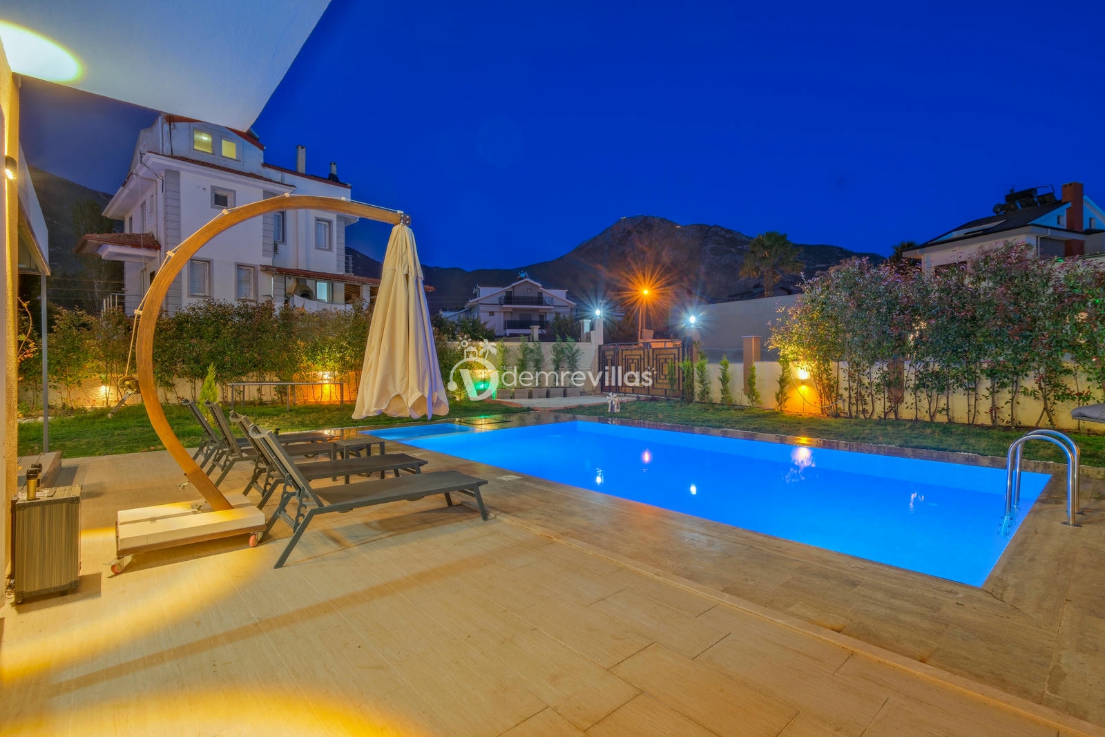 Fethiye Hisörönü mevkiinde yer alan villa, sizlere huzurlu bir konaklama deneyimi sunuyor. 3 yatak odasıyla 6 kişilik konaklama kapasitesine sahip olan villamız, geniş aileler için ideal bir tercihtir. Ferah iç mekanları ve zarif tasarımı ile göz dolduran villa, doğa manzarasına hakimdir.