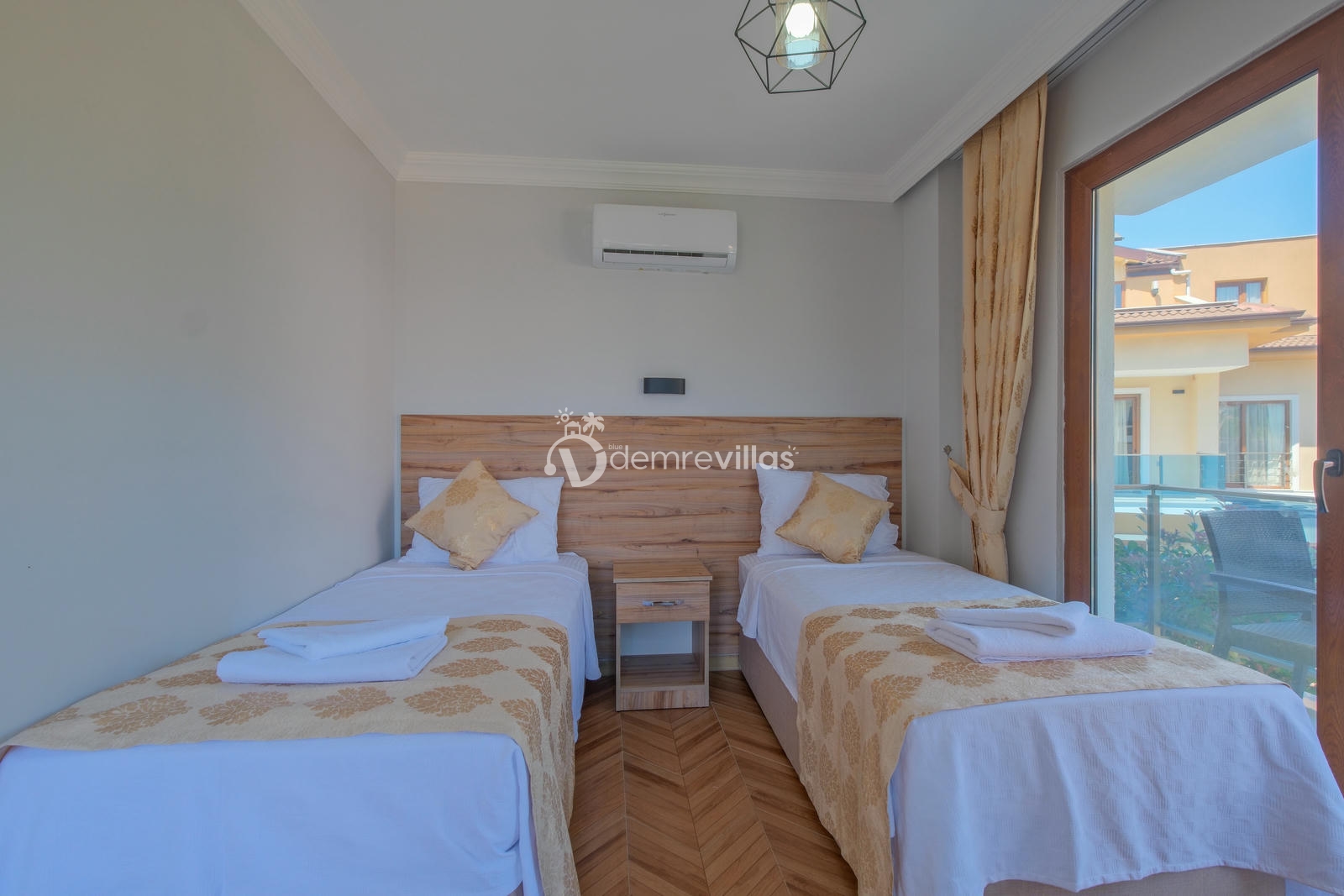 Villamızın özel havuzunda doyasıya yüzebilir ve güneşin keyfini çıkarabilirsiniz. Bahçe alanında kapasiteye uygun şezlong takımı, oturma grubu, bluetooth ses sistemi, masa tenisi ve barbekü bulunmaktadır. Havuz terasına açılan konforlu oturma odası ve tam donanımlı açık mutfak, tatilinizi daha da keyifli hale getirecek. Villamızın birinci yatak odasında çift kişilik yatak, ebeveyn banyosu; ikinci yatak odasında çift kişilik yatak, üçüncü yatak odasında ise iki adet tek kişilik yatak ve banyo yer almaktadır.