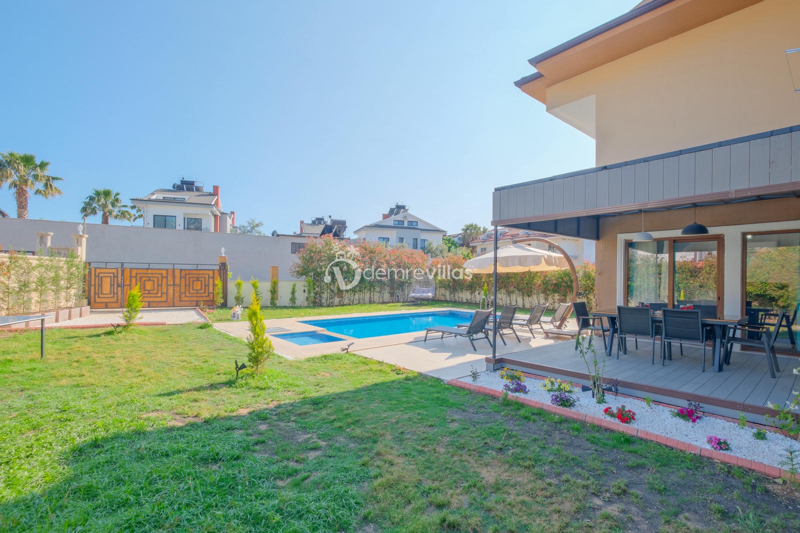 Villamızın özel havuzunda doyasıya yüzebilir ve güneşin keyfini çıkarabilirsiniz. Bahçe alanında kapasiteye uygun şezlong takımı, oturma grubu, bluetooth ses sistemi, masa tenisi ve barbekü bulunmaktadır. Havuz terasına açılan konforlu oturma odası ve tam donanımlı açık mutfak, tatilinizi daha da keyifli hale getirecek. Villamızın birinci yatak odasında çift kişilik yatak, ebeveyn banyosu; ikinci yatak odasında çift kişilik yatak, üçüncü yatak odasında ise iki adet tek kişilik yatak ve banyo yer almaktadır.