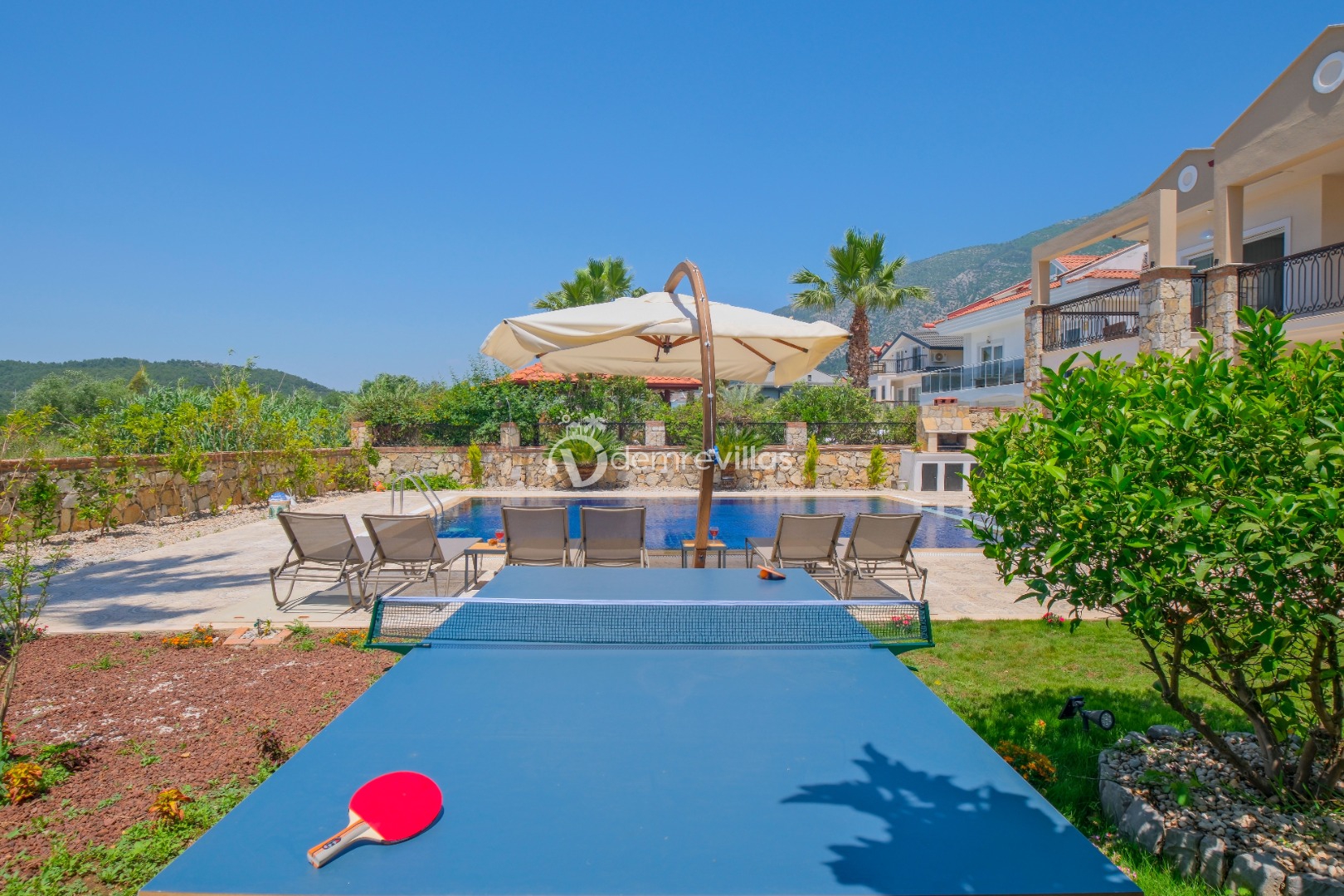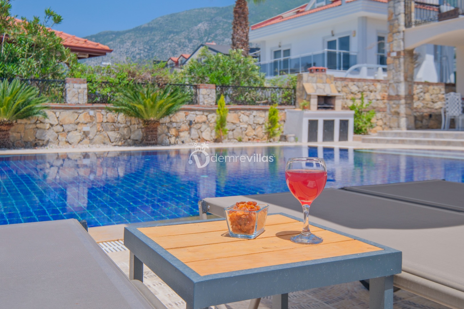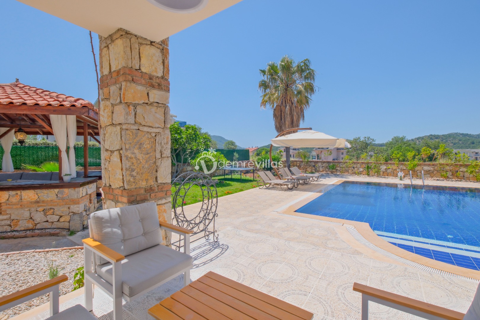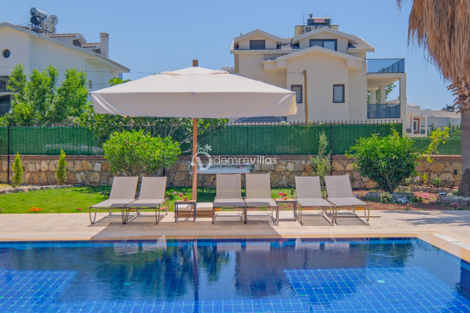 Villamızın özel havuzunda doyasıya yüzebilir ve güneşin keyfini çıkarabilirsiniz. Bahçe alanında kapasiteye uygun şezlong takımı, oturma grubu ve barbekü bulunmaktadır. Havuz terasına açılan konforlu oturma odası ve tam donanımlı açık mutfak, tatilinizi daha da keyifli hale getirecek.