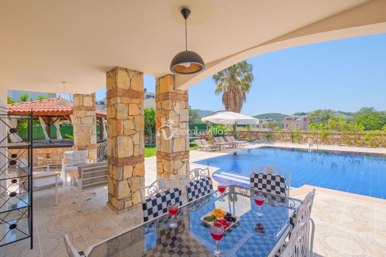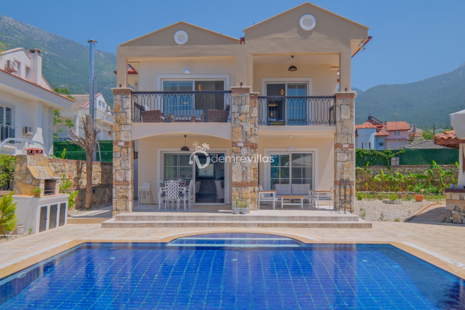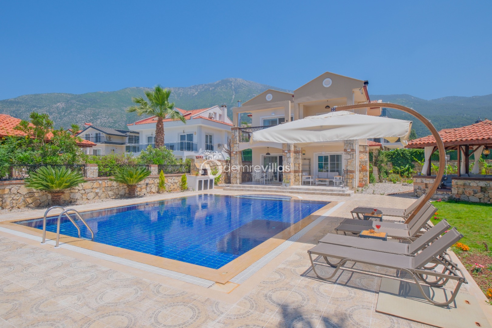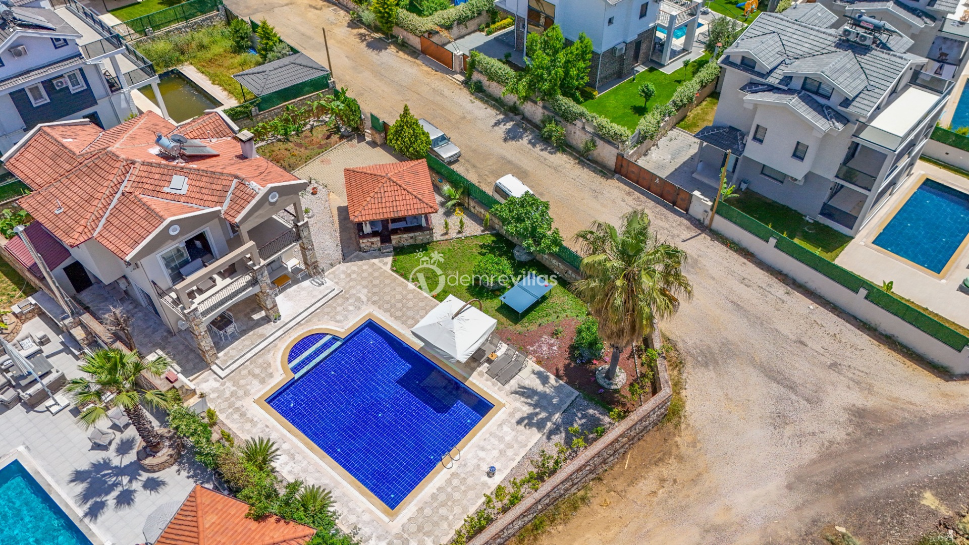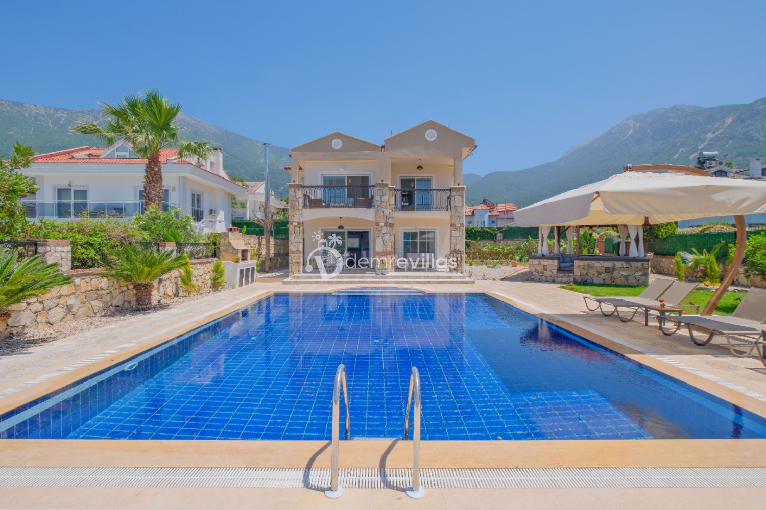 Villamızın özel havuzunda doyasıya yüzebilir ve güneşin keyfini çıkarabilirsiniz. Bahçe alanında kapasiteye uygun şezlong takımı, oturma grubu ve barbekü bulunmaktadır. Havuz terasına açılan konforlu oturma odası ve tam donanımlı açık mutfak, tatilinizi daha da keyifli hale getirecek.