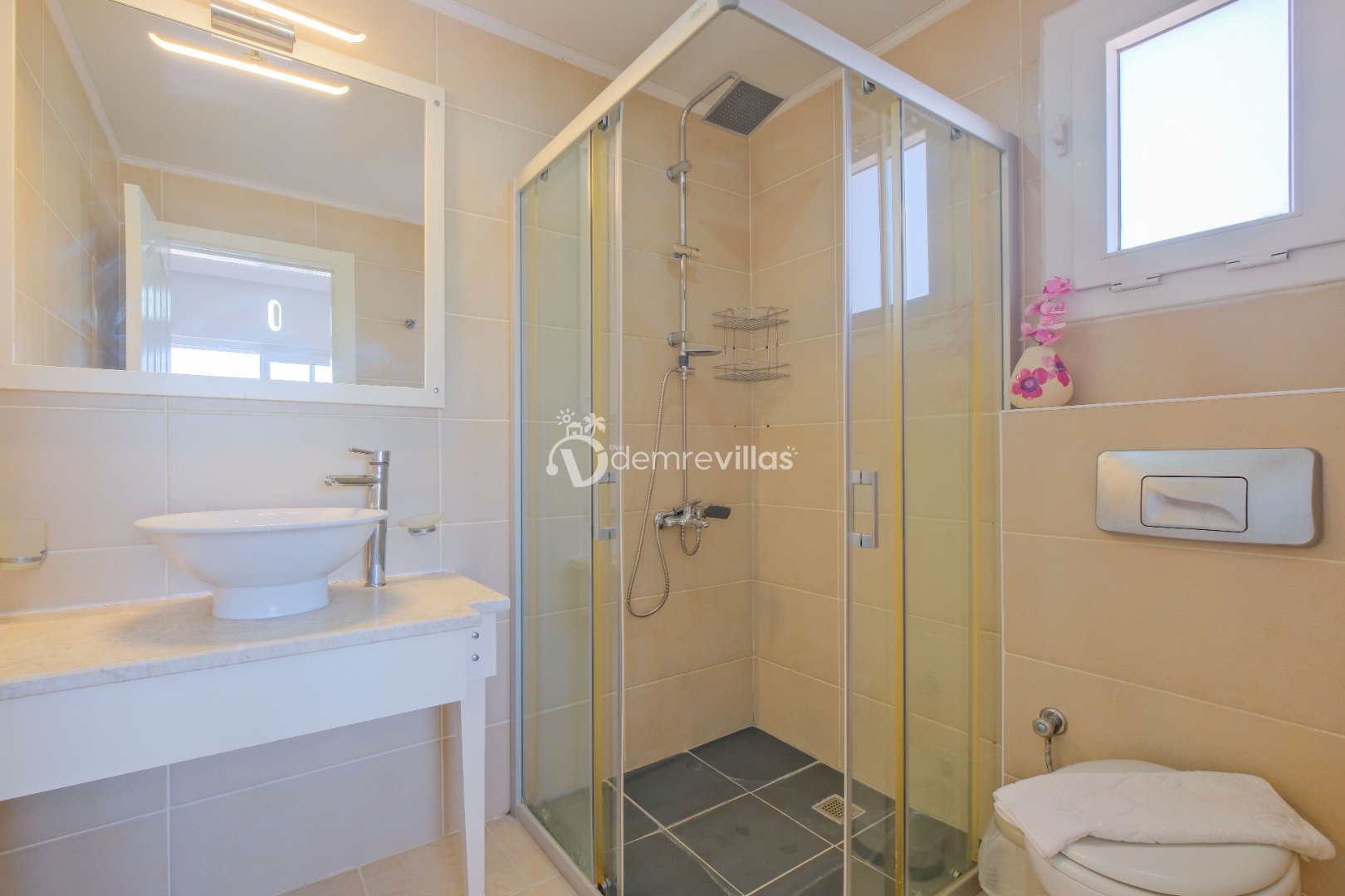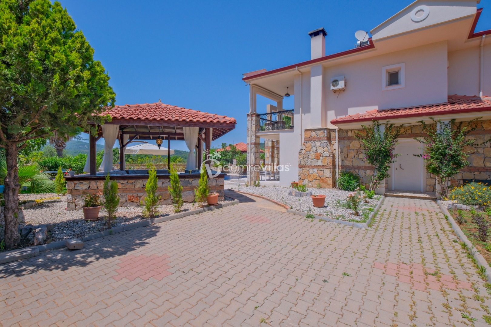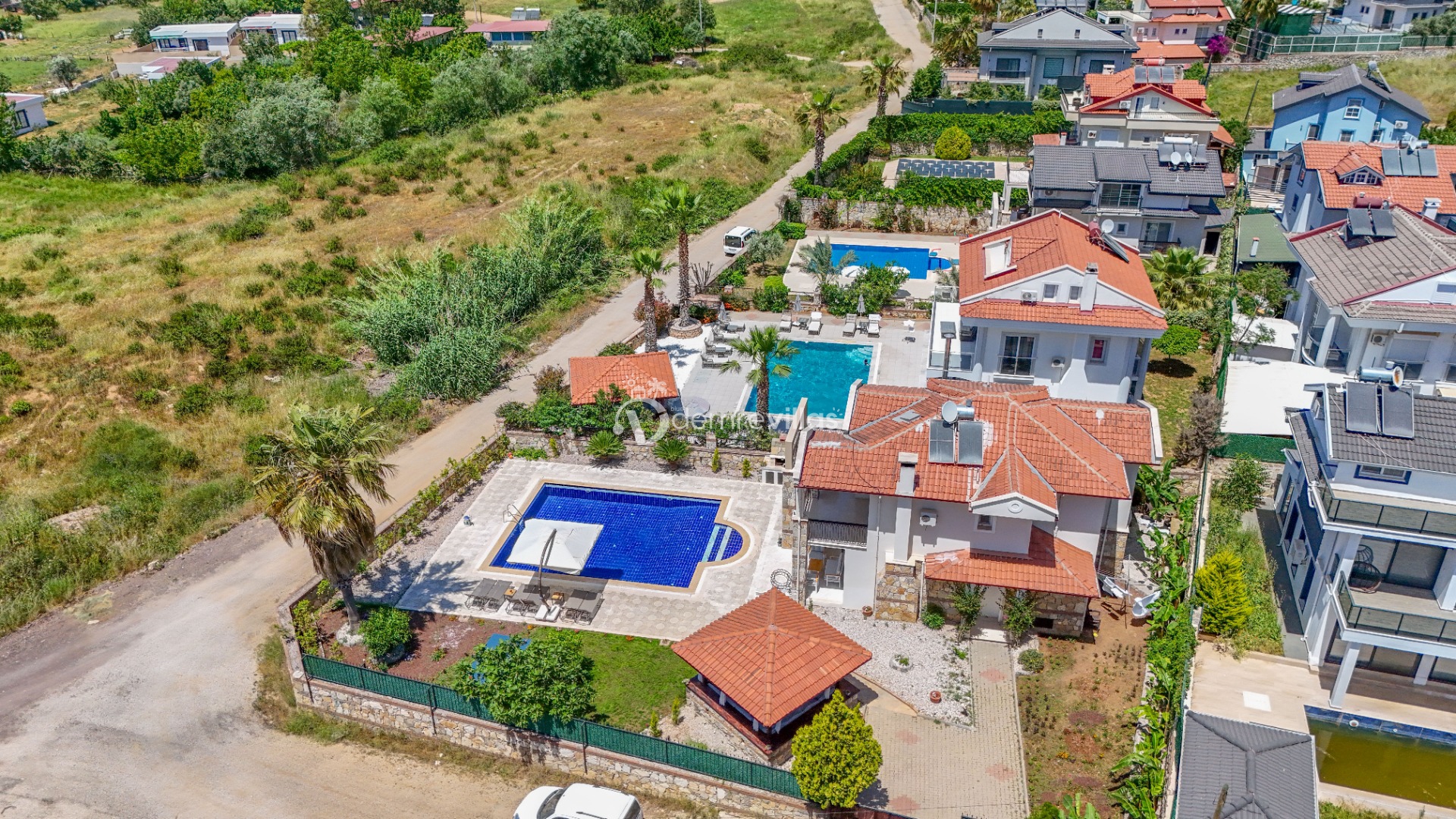Coğrafi yapısı bakımında dağlık bir alana sahip olan bölgemizdeki villalarımız genel olarak yamaç üzerine kuruludur. Bu nedenle villalarımıza giderken yokuş yukarı çıkılmaktadır. Bu not sadece bu villa ile ilgili değildir. Tüm villalarımızda yazmaktadır.