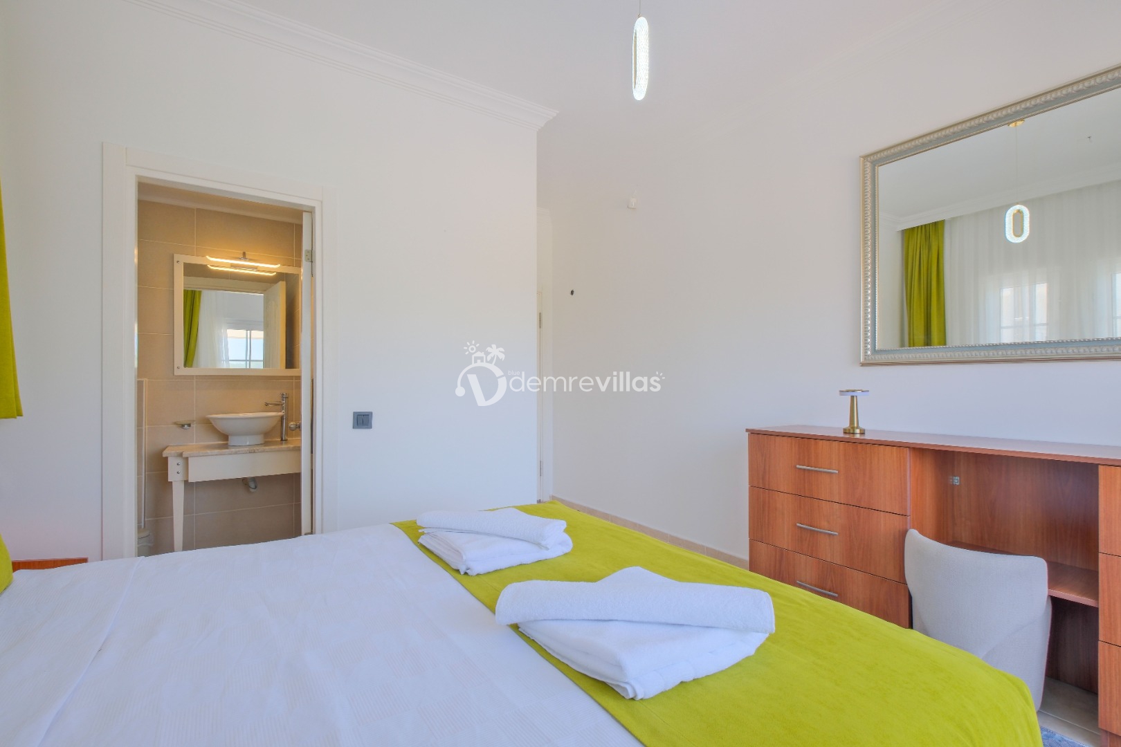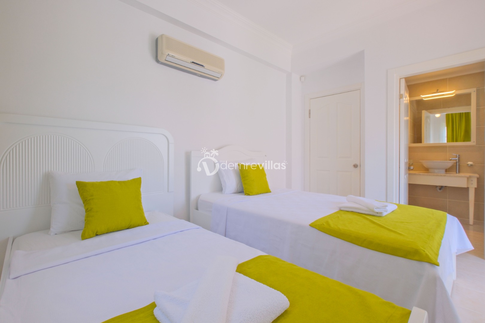Villamızın birinci yatak odasında çift kişilik yatak, ebeveyn banyosu; ikinci yatak odasında çift kişilik yatak, ebeveyn banyosu, üçüncü yatak odasında ise iki adet tek kişilik yatak ve banyo yer almaktadır.
