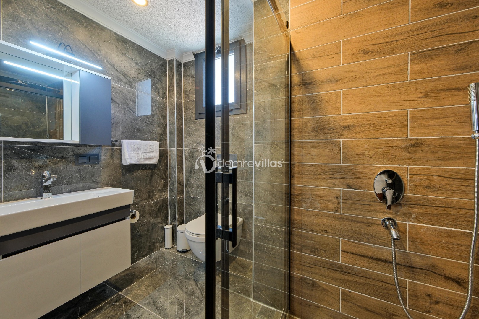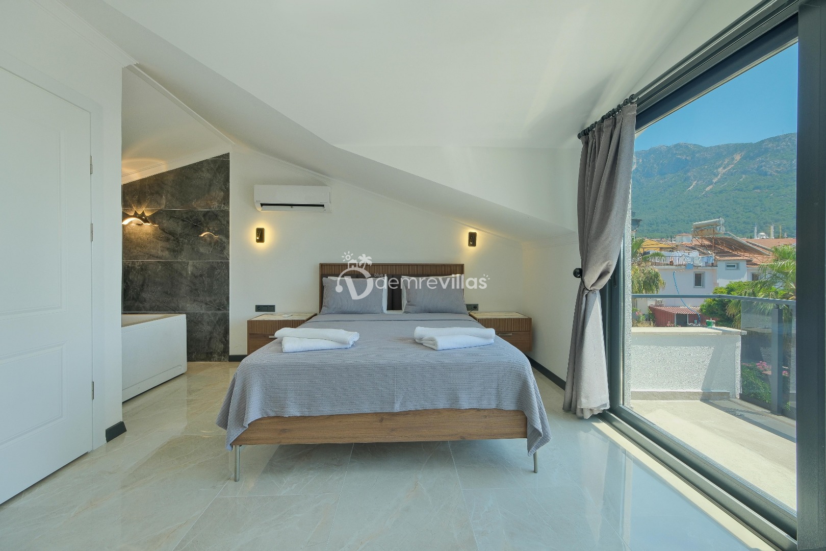 Coğrafi yapısı bakımında dağlık bir alana sahip olan bölgemizdeki villalarımız genel olarak yamaç üzerine kuruludur. Bu nedenle villalarımıza giderken yokuş yukarı çıkılmaktadır. Bu not sadece bu villa ile ilgili değildir. Tüm villalarımızda yazmaktadır.