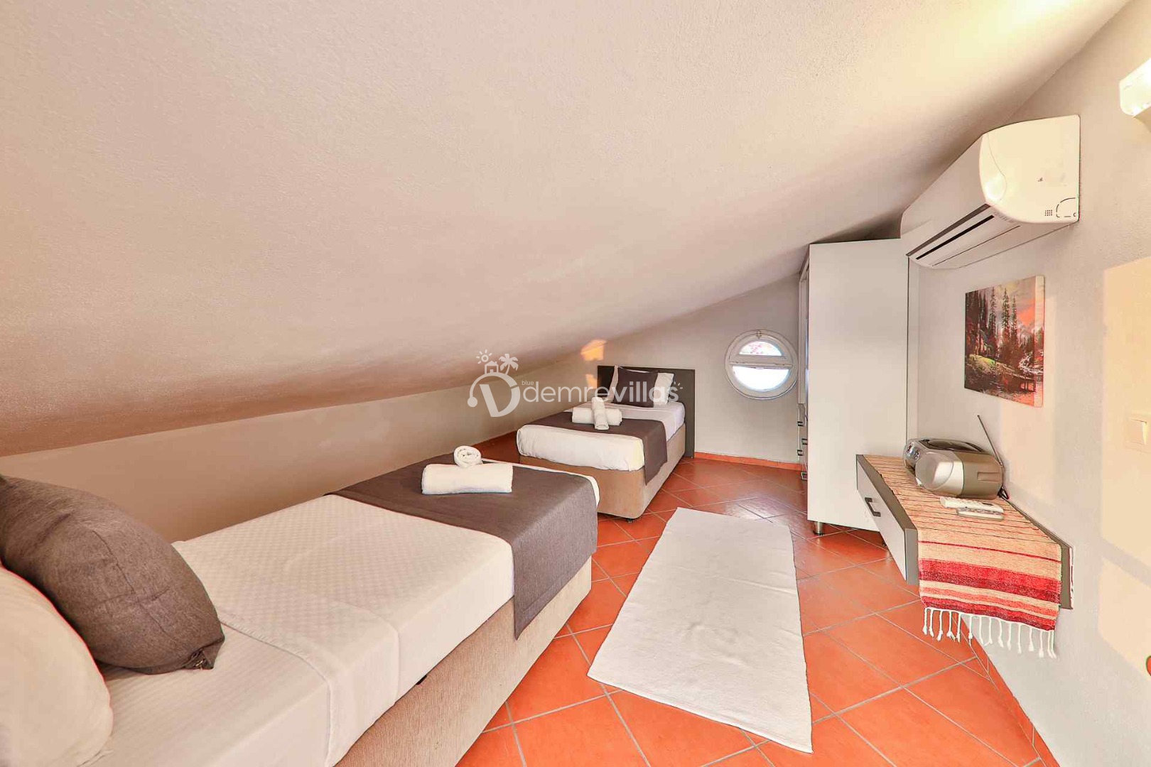 3. Yatak Odası : Tek kişilik iki adet yatak, balkon, komodin, klima bulunmaktadır. ( Çatı katında olup biraz basık bir alana sahiptir. )