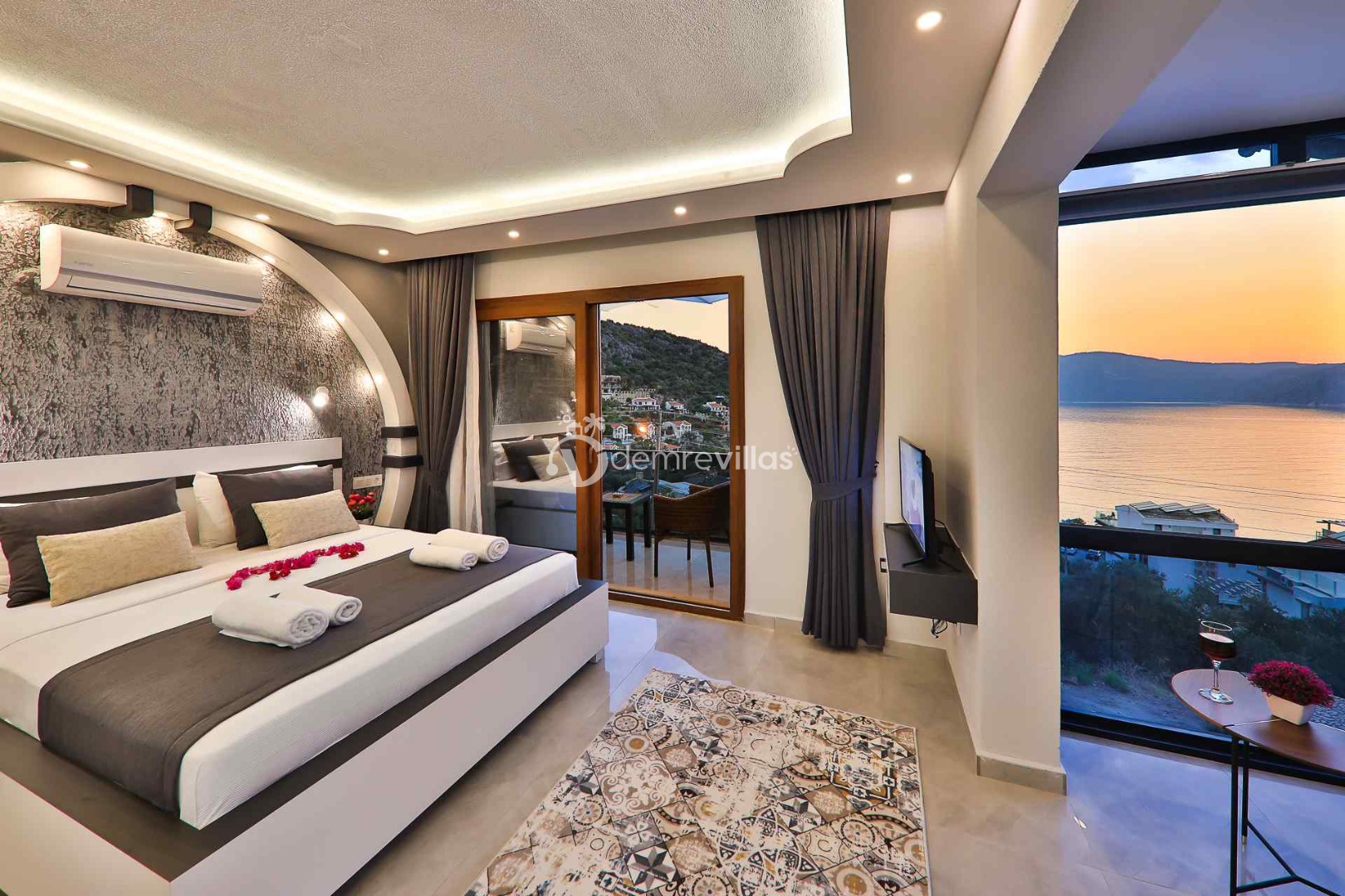 Kalkan Kışla Bölgesi’nde yer alan muhteşem deniz manzarasına sahip villamız 3 yatak odalı ve 6 kişilik konaklama kapasitesine sahiptir.