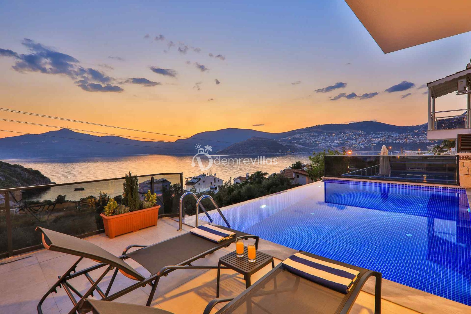 Villamızın muhteşem manzaralı bahçesimde sonsuzluk havuzu, şezlong, oturma köşesi, barbekü ve yemek masası yer almaktadır.