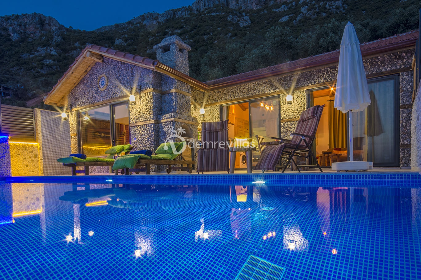 Kalkan Kördere mevkiinde yer almaktadır.Villamız 1 yatak odalı olup 2 kişi konaklama kapasitesine sahiptir.Villamız muhteşem deniz manzaralı ve muhafazakar olup, balayı tatili için uygundur. Eşsiz doğa manzarasına sahip olan villamızda keyifli anlar geçirebilir,yılın yorgunluğunu üstünüzden atabilirsiniz. Otantik havası ile içinize huzur katacak villada bulunan jakuzi de yine ruhunuza iyi gelecek detaylardan yalnızca birisi. Hem doğanın içinde hem de denize yakın olacağınız villada aradığınız her şey elinizin altında olacak.