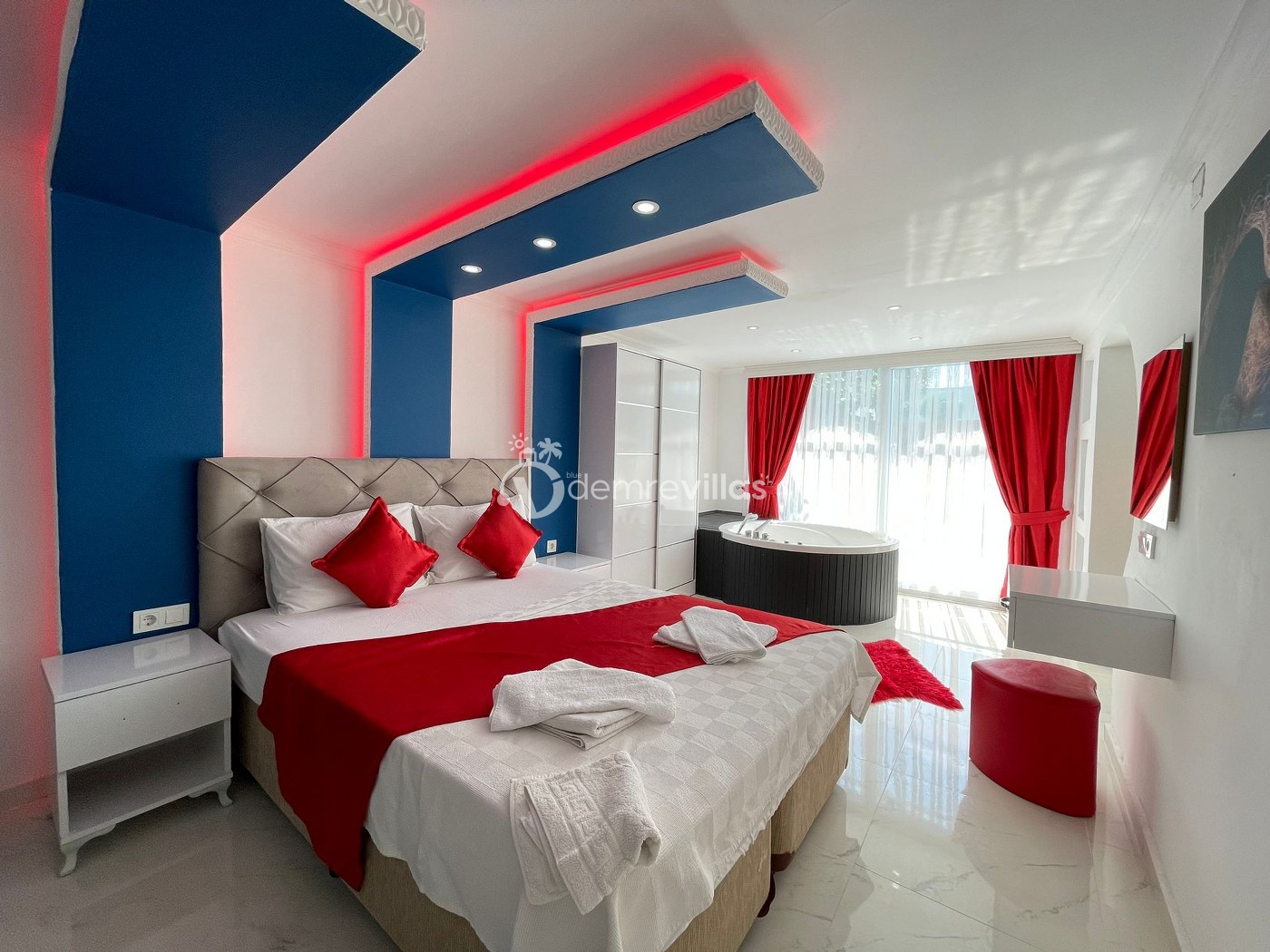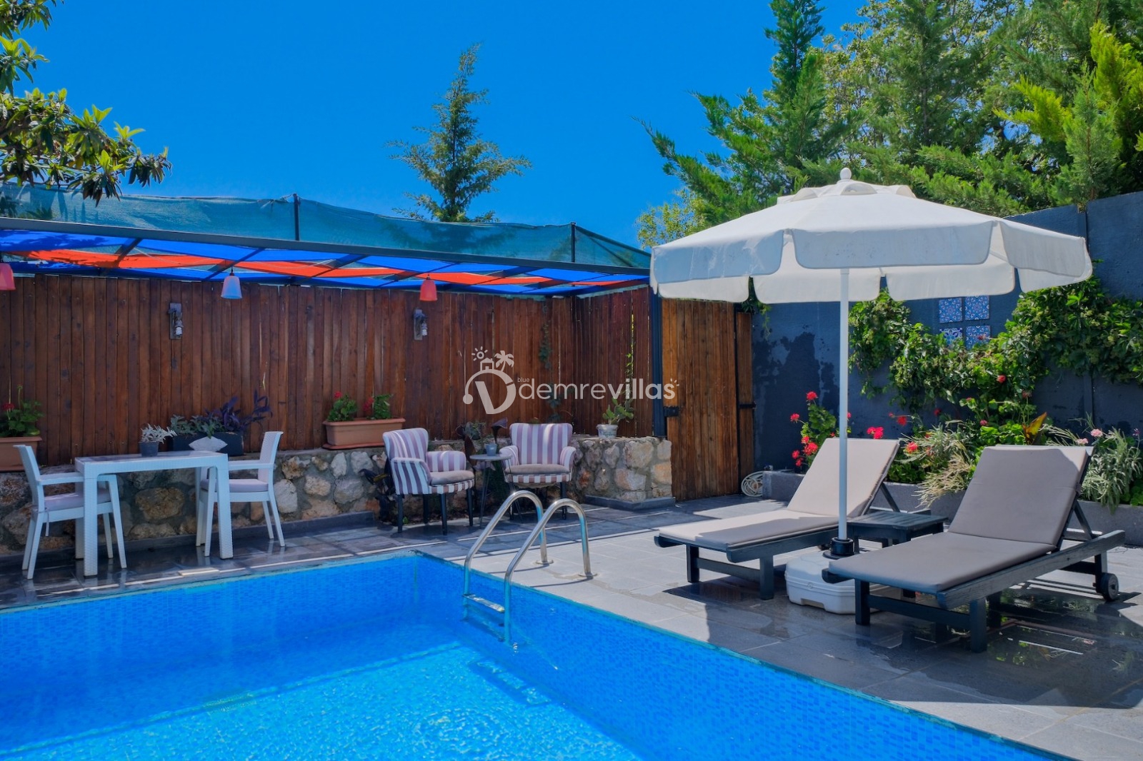 Not: Villamızın üst katında Villa Blue 8382 bulunmaktadır. Her iki villa da korunaklı olup, havuzları birbirini görmemektedir. Villaların girişleri birbirinden farklıdır ve her iki villa da ayrı ayrı kiralanabilir.