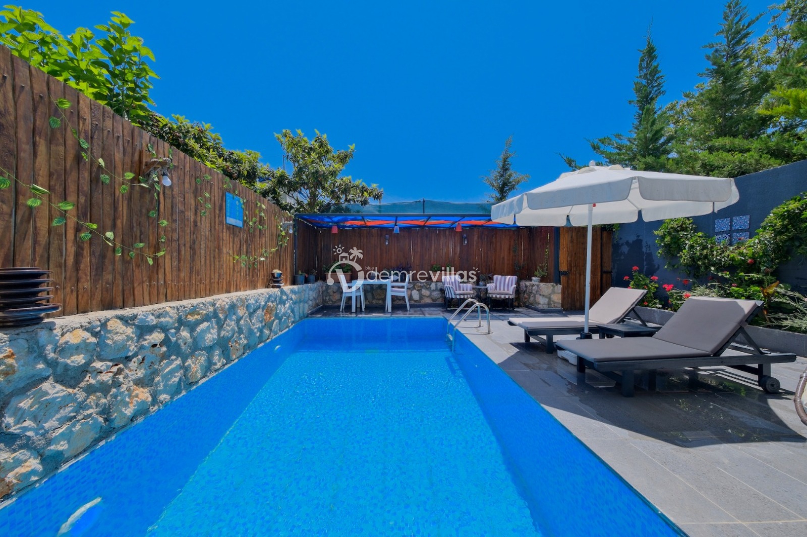 Antalya Kaş Kalkan'ın Üzümlü mevkiinde konumlanmış Kiralık Balayı Villasıdır.