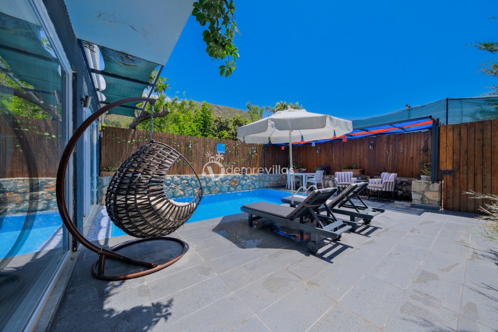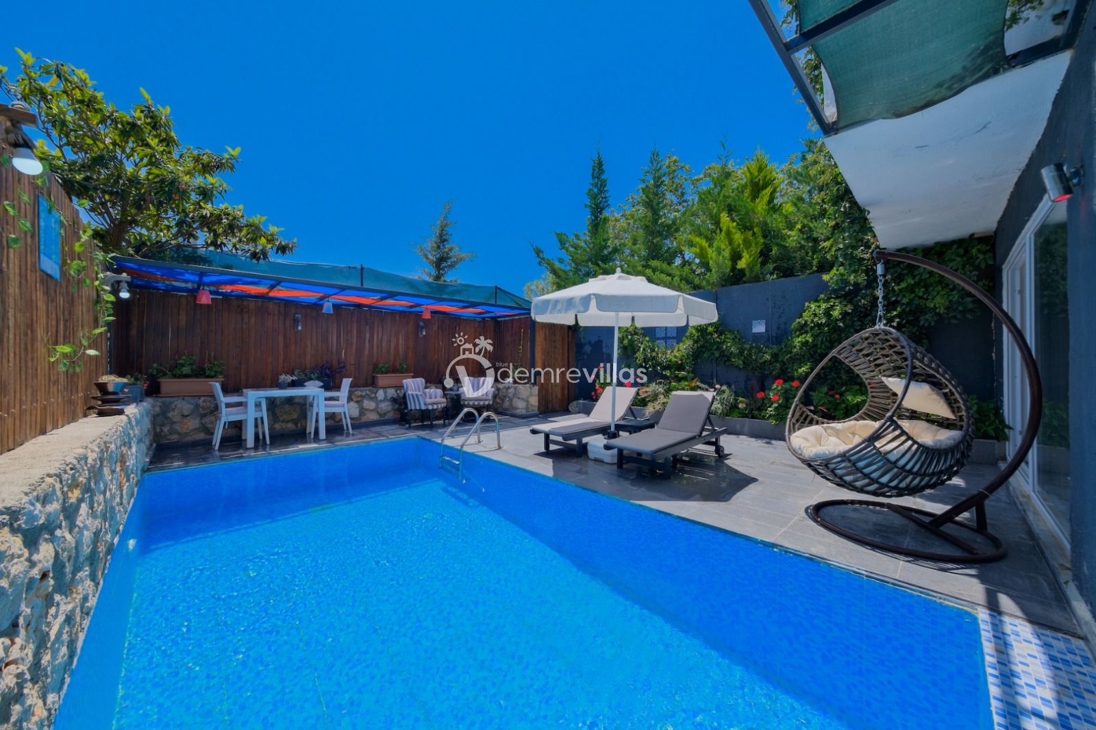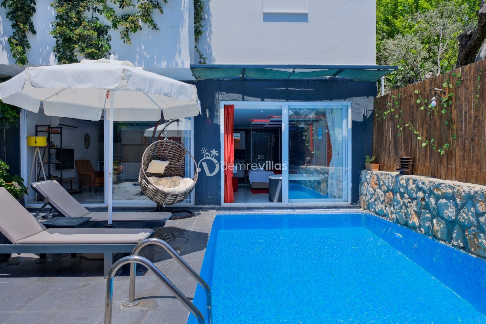 Balayı çiftlerine özel olarak dizayn edilmiş olan villamızın havuzu korunaklıdır ve dışarıdan görünmemektedir. Ayrıca jakuziye sahip olan villamızda rahat ve konforlu bir tatil sizleri bekliyor.