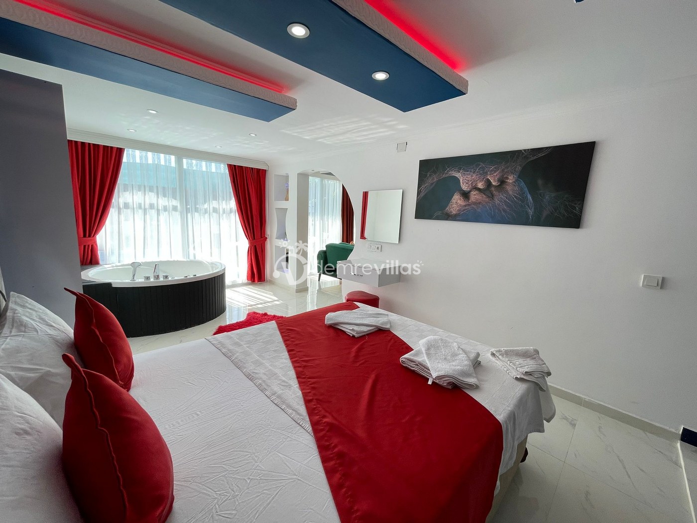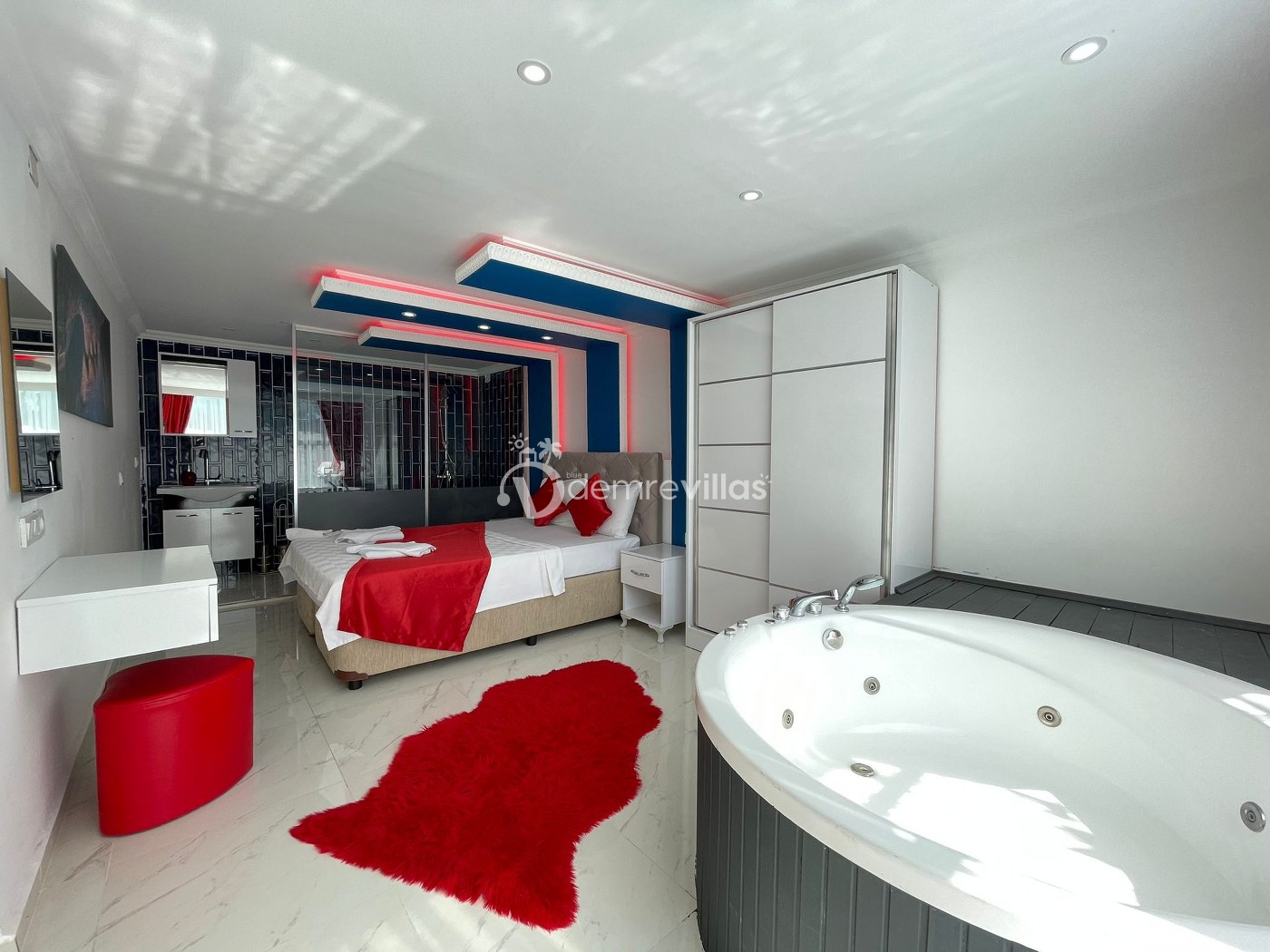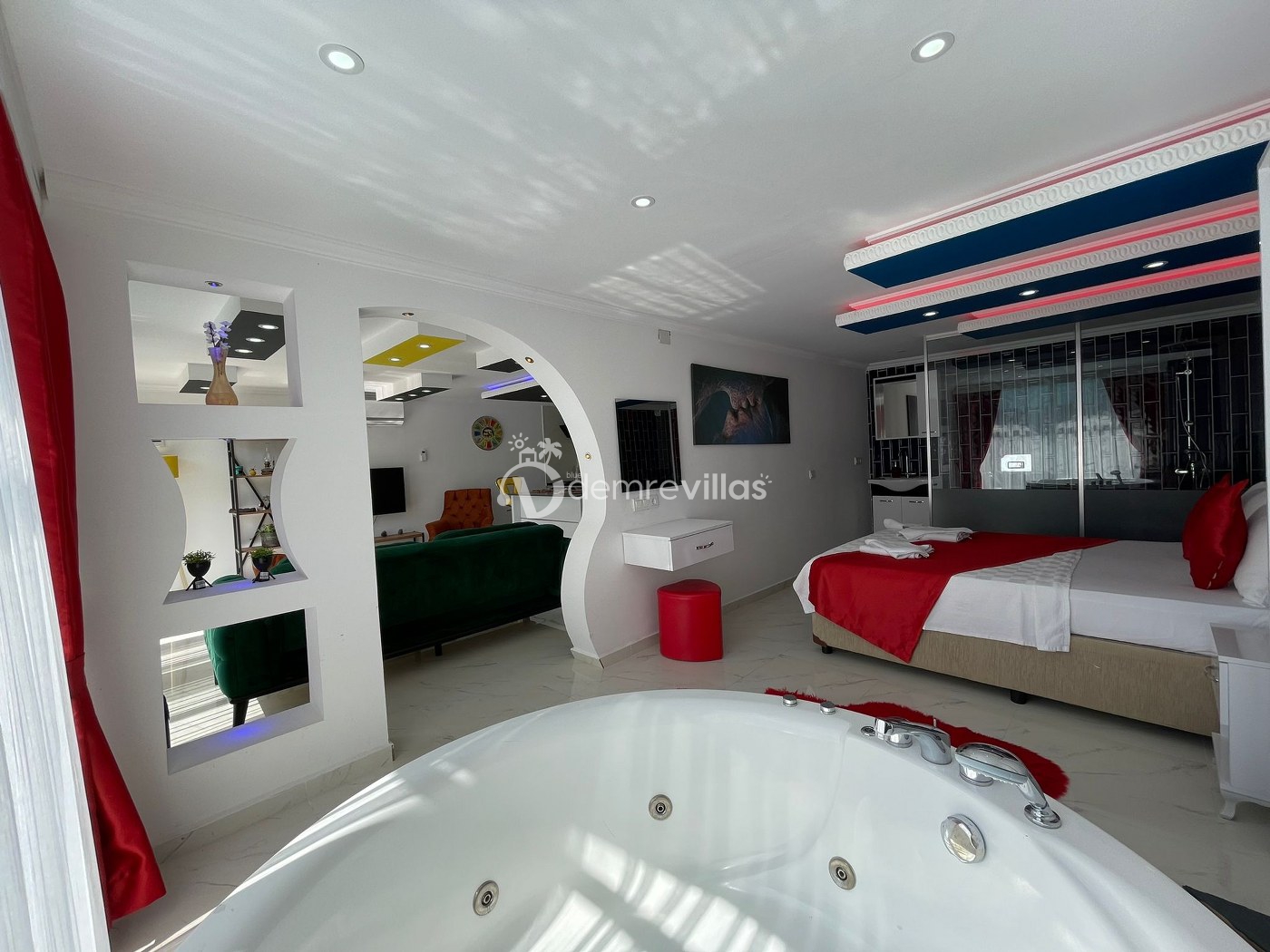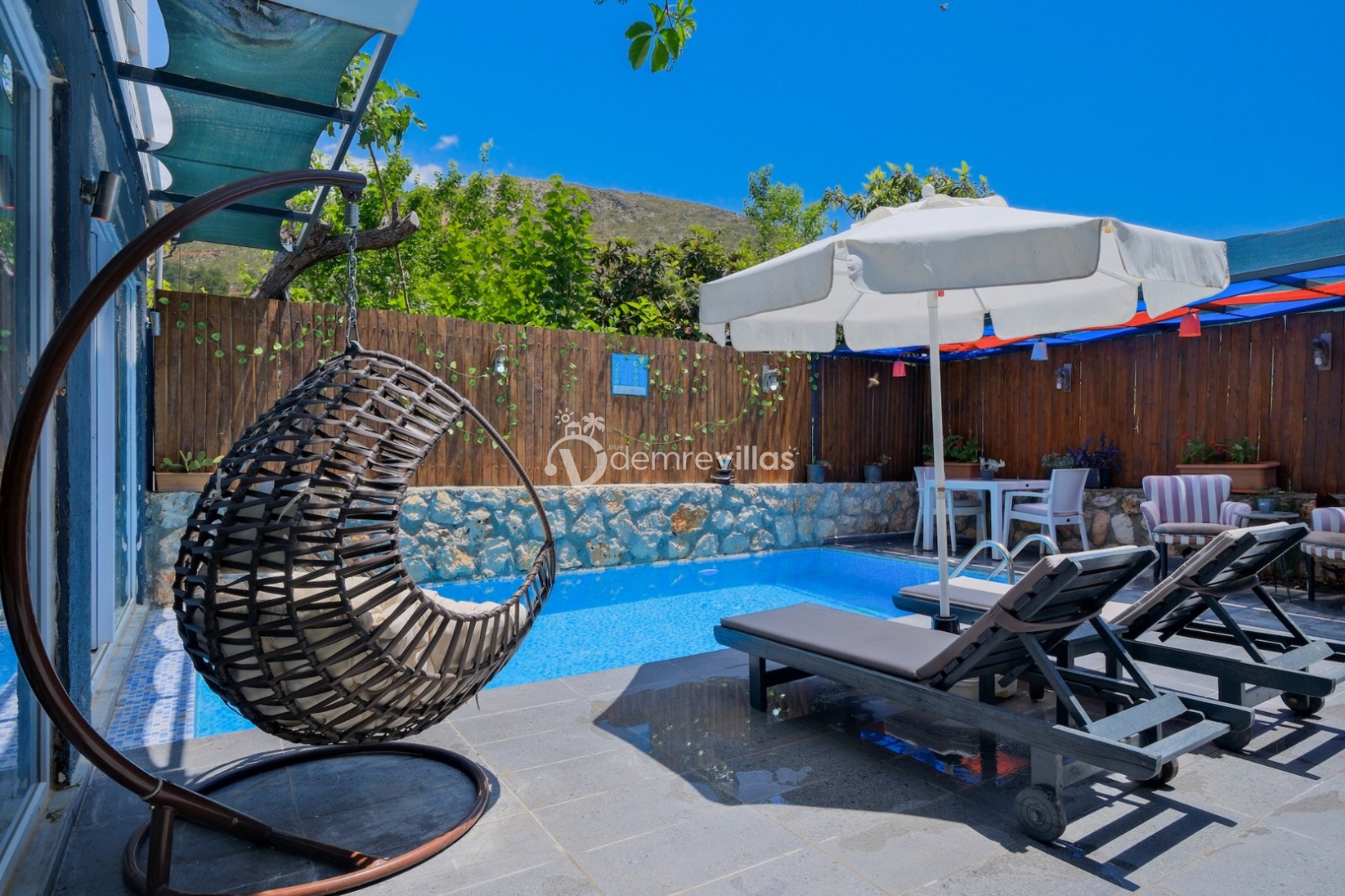 Balayı çiftlerine özel olarak dizayn edilmiş olan villamızın havuzu korunaklıdır ve dışarıdan görünmemektedir. Ayrıca jakuziye sahip olan villamızda rahat ve konforlu bir tatil sizleri bekliyor.