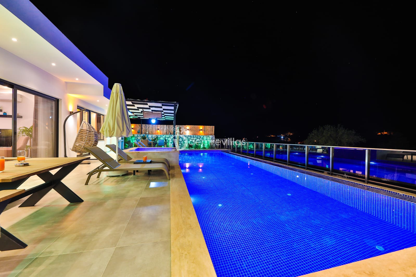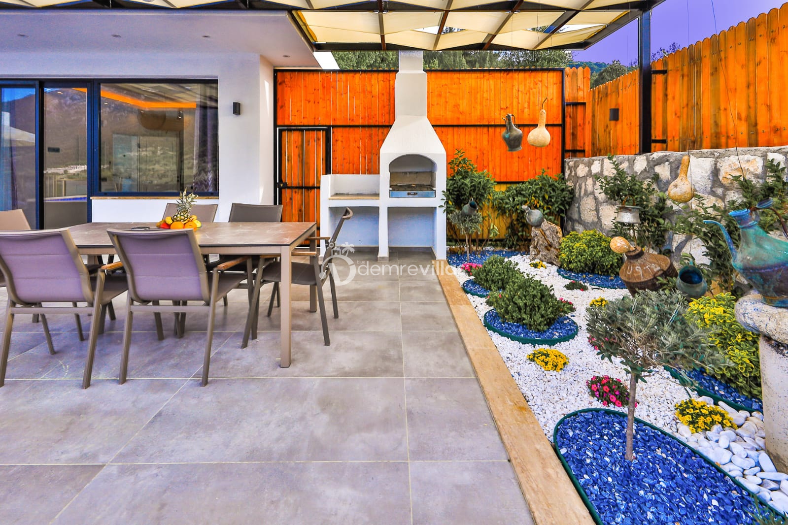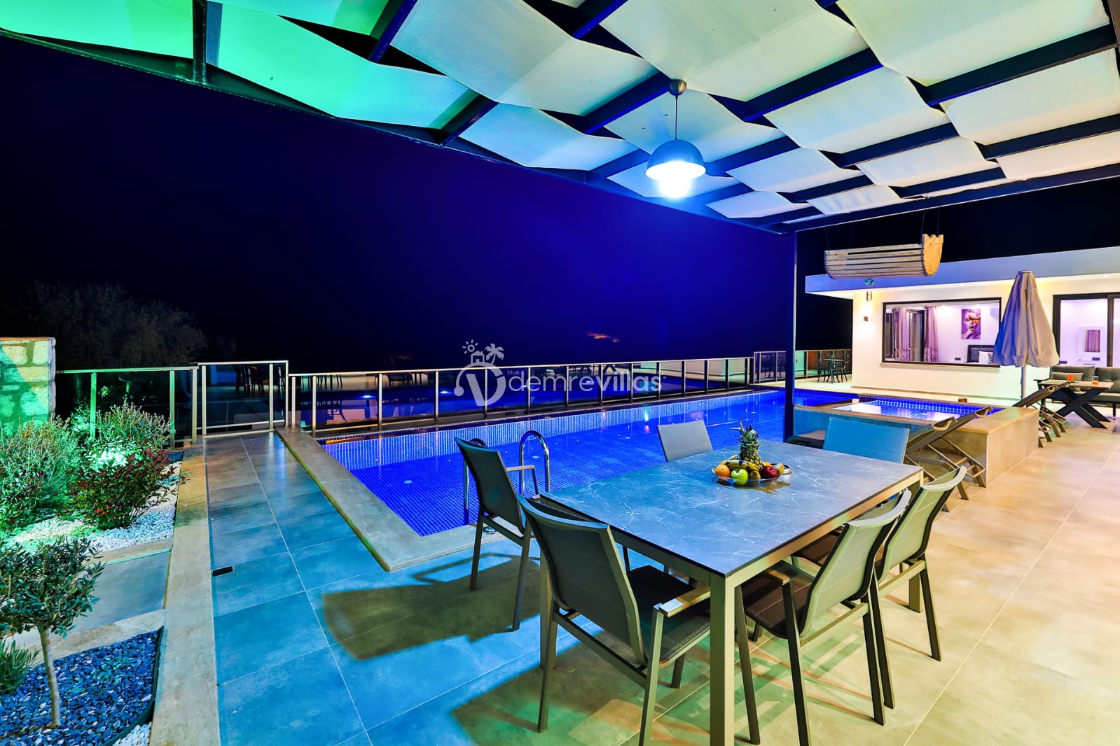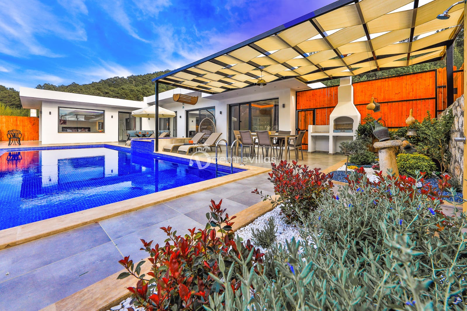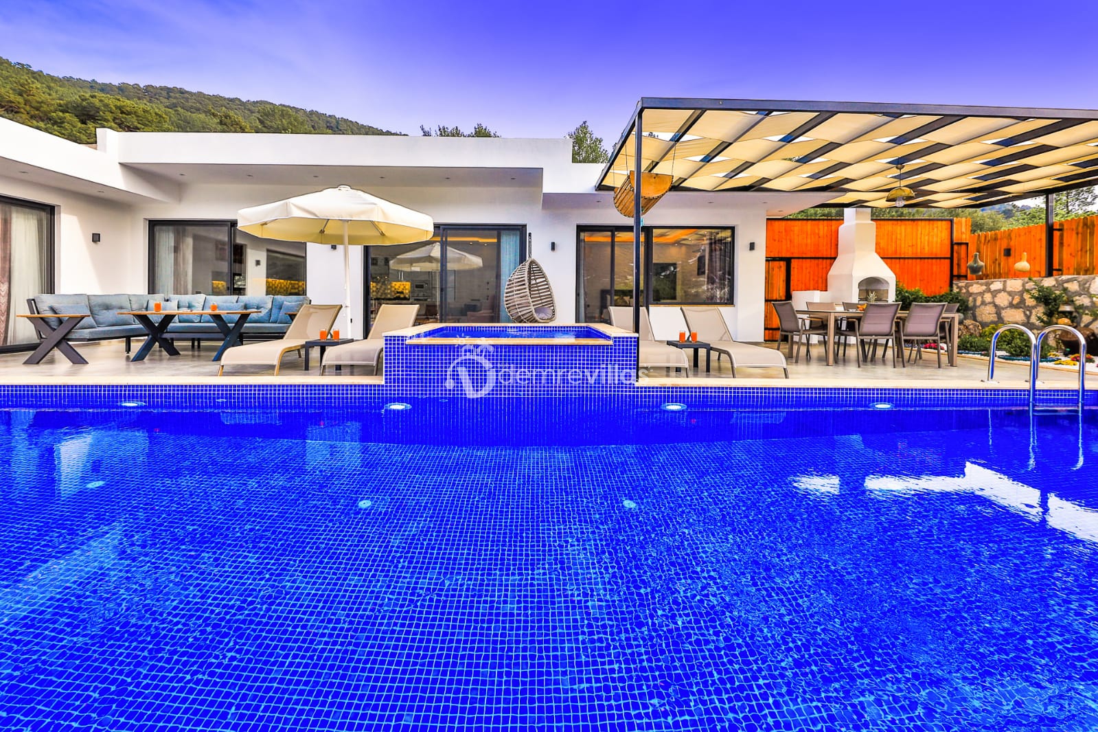 Villamızın doğa manzaralı bahçesinde havuz, çocuk havuzu, şezlong, masa tenisi, langırt, mini çocuk oyun alanı, oturma köşesi, yemek masası ve barbekü yer almaktadır. Ayrıca villamızın modern dizayna sahip yatak odasınıın içerisinde jakuzi bulunmaktadır.
