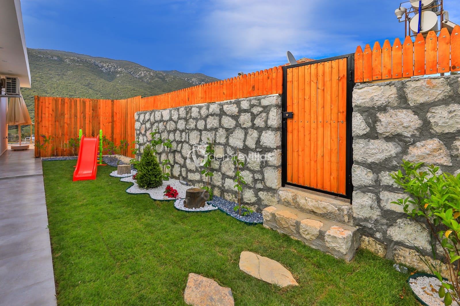 Coğrafi yapısı bakımında dağlık bir alana sahip olan bölgemizdeki villalarımız genel olarak yamaç üzerine kuruludur. Bu nedenle villalarımıza giderken yokuş yukarı çıkılmaktadır. Bu not sadece bu villa ile ilgili değildir. Tüm villalarımızda yazmaktadır.