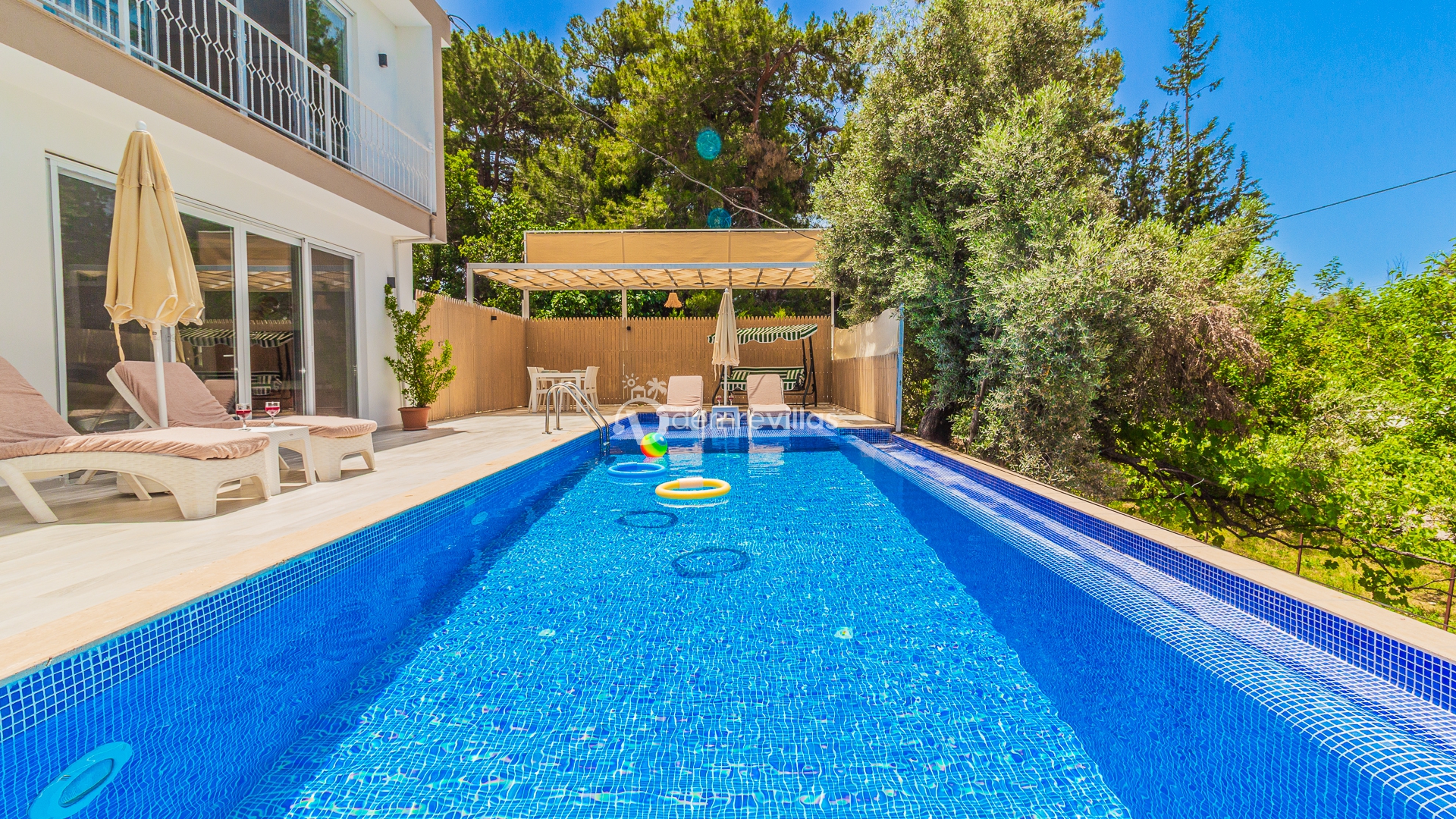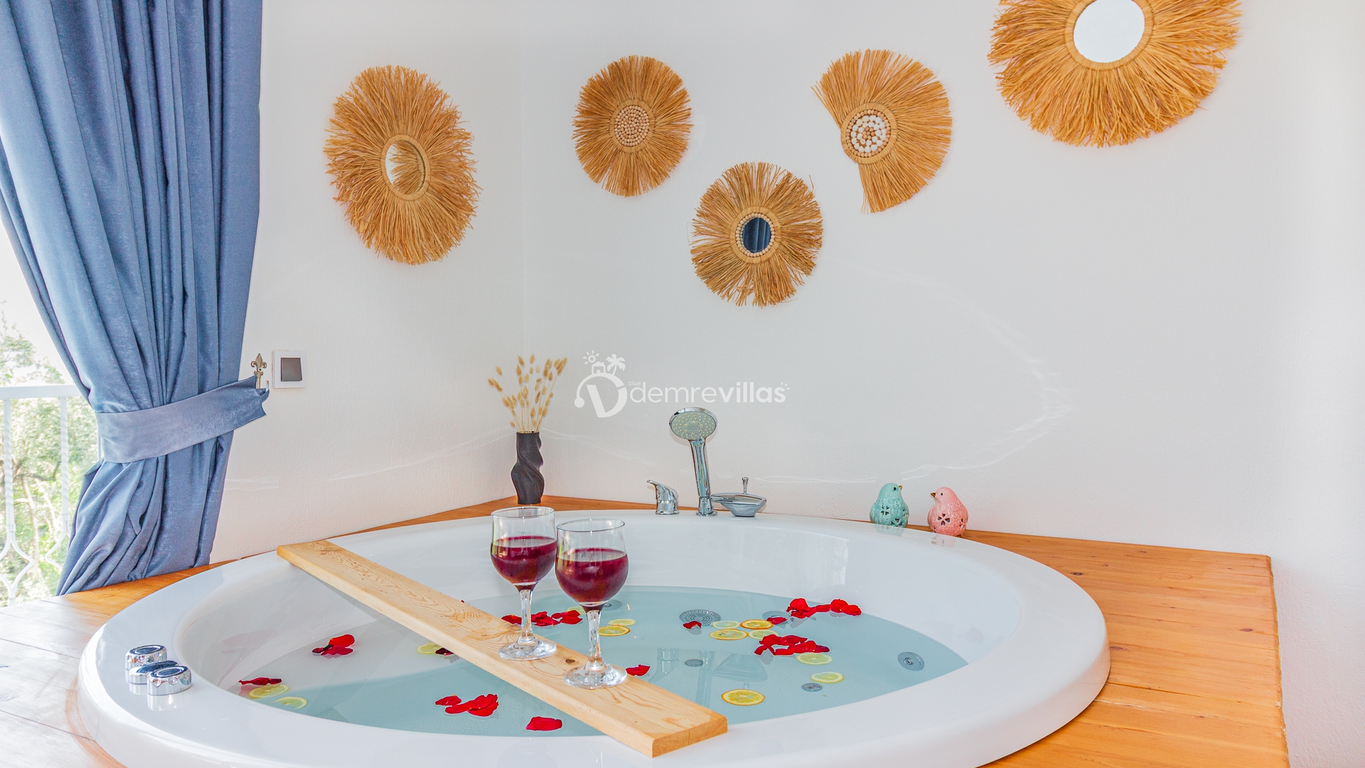 Geniş bir plana sahip mimarisi ile villanın çok özel bir konumu bulunmaktadır. Sığ havuza konulan şezlonglarla tatilinizde ayaklarınızı serin tutup güneşlenebilir ve muhteşem doğa manzaranın tadını çıkarabilirsiniz. Aynı zamanda muhafazakar aileler içinde çok uygun bir seçenektir.