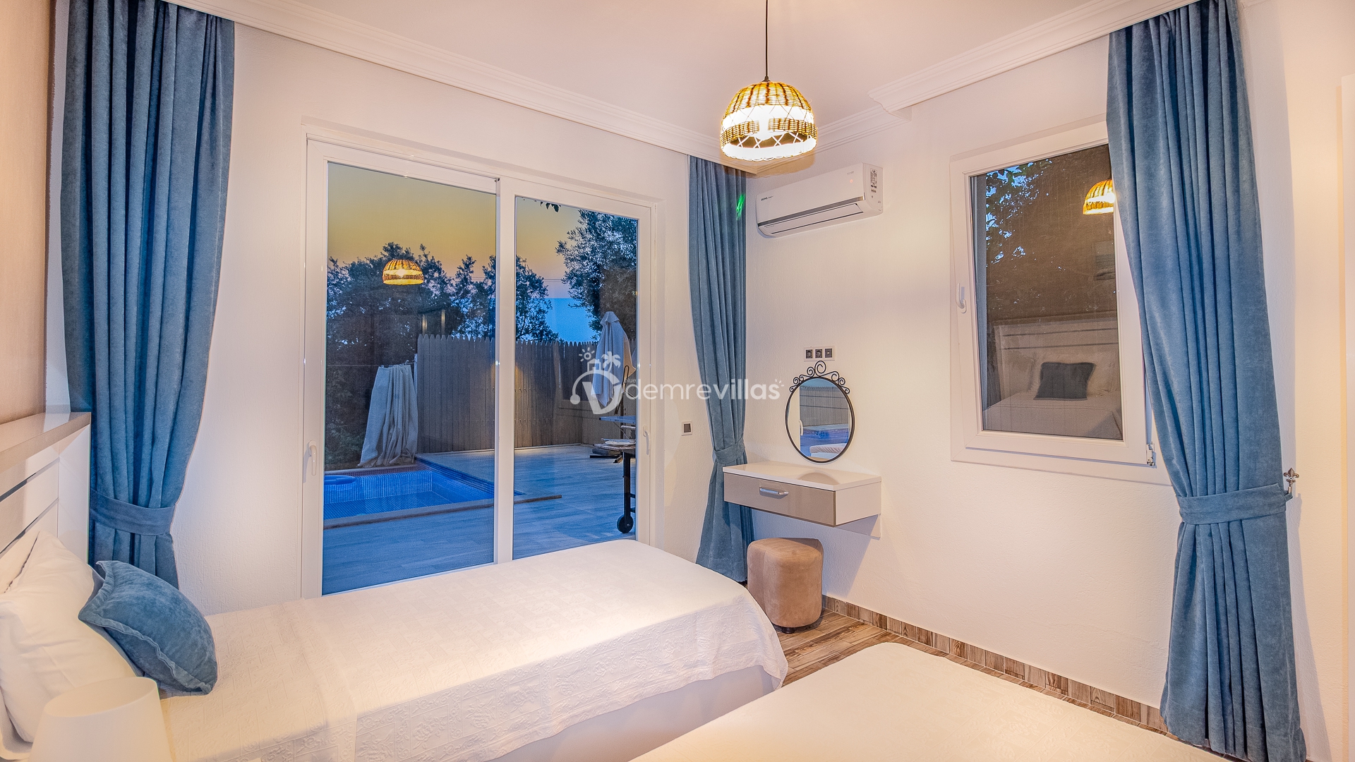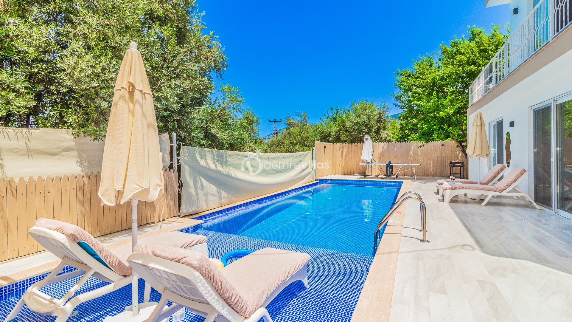 Kalkan Üzümlü Köyü'nde yer alan havuzu tam korunaklı, 2 yatak odalı 4 kişilik tatil villasıdır.