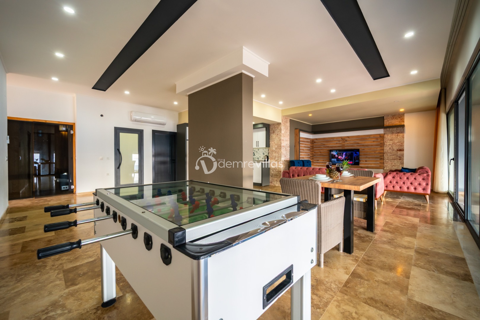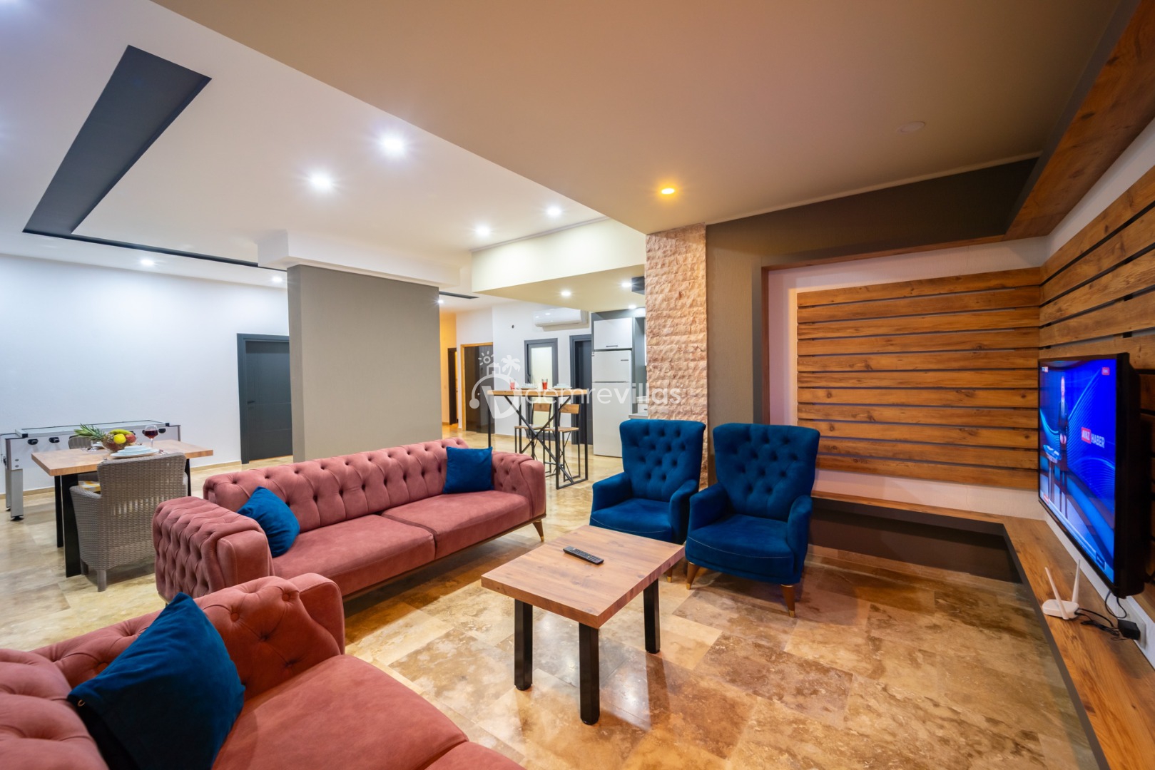 Tek yatak odalı villamızda hamam, sauna, jakuzi, langırt, ısıtmalı havuz, sinema odası gibi keyifli bir tatil geçirmeniz için tüm seçenekler bulunmaktadır.