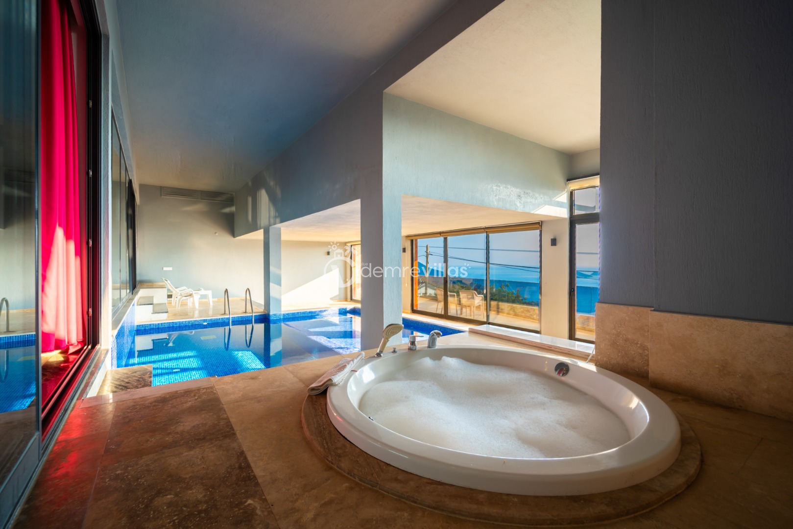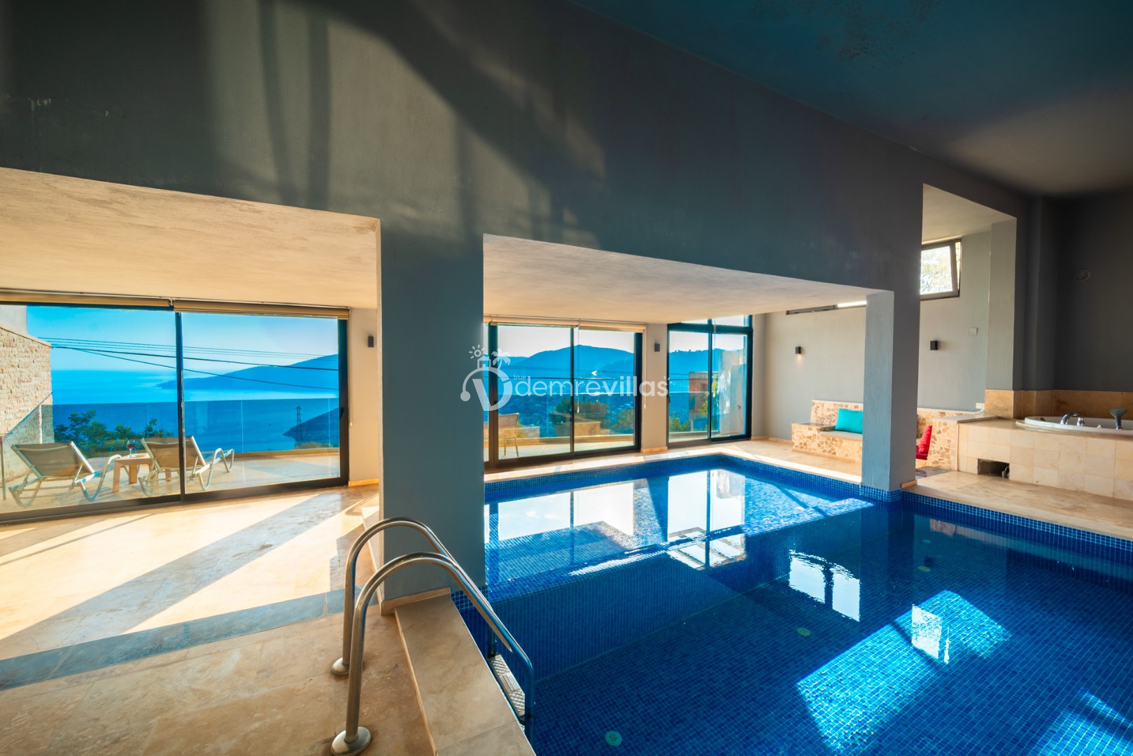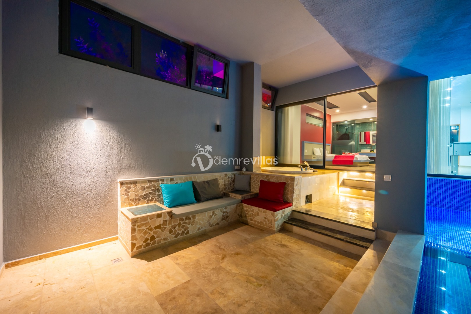 Villamızın havuzu kapalı havuzolarak tasarlanmış olup salon ve yatak odasıyla bağlantılı olarak bulunmaktadır. Isıtma özelliği sayesinde kış aylarında da konaklama yapabilirsiniz.