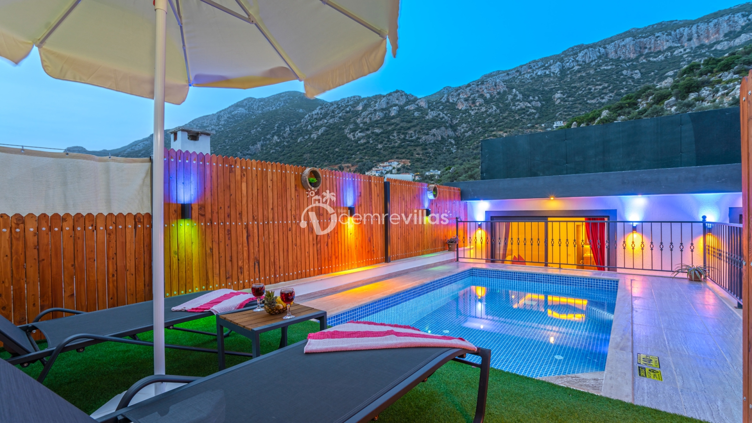 Kalkan'ın Bezirgan bölgesinde yer alan 2 yatak odası ile 4 kişi kapasiteye sahip tatil villamızdır.İçerisinde bulunan villamızın havuz bölgesi dışarıdan görünmemekte ve muhafazakâr bir yapıya sahip olmaktadır.Ayrıca lüks ve konforlu eşyalarla dizayn edilmiş olan villamız eğlenceli zamanlar geçirebileceğiniz ortamı ve rahatı sunacaktır. Balayı çiftlerimiz ve çekirdek ailelerimiz için ideal olan villamız memnun kalacağınız seçeneklerimizdendir.