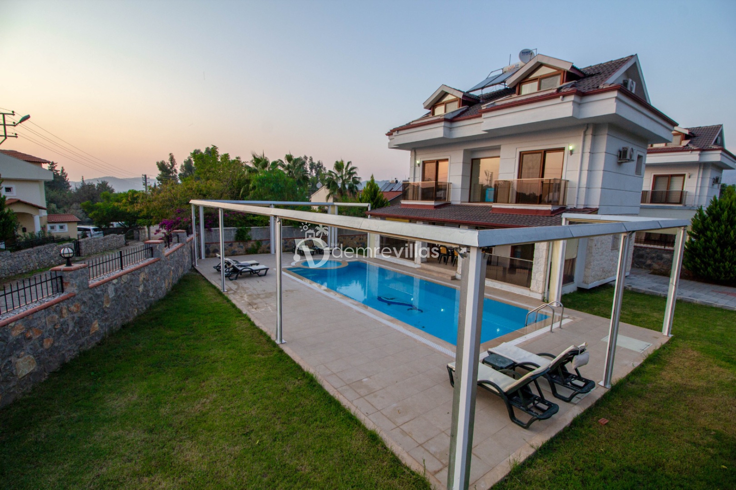 Villamız, Ölüdeniz/Ovacık mevkiinde konumlanan özel korunaklı havuzlu modern bir villadır. Keyfli bir tatil geçirmeniz adına villamızın içerisinde tüm detaylar düşünülmüştür. Tüm odaları suit 4 yatak odasına ve 8 kişilik konaklama kapasitesine sahip olan villamızda gözlerden uzak huzur dolu bir tatil geçireceksiniz. Geniş bir bahçe içerisinde konumlanmış bu çok özel villamız ferah kullanım alanlarına sahip ve büyük boyuttaki havuzunu çevreleyen açılır kapanır branda sistemi sayesinde havuzunuz tam korunaklı hala gelebilmektedir. Bu özelliği ile muhafazakar aileler için uygun bir seçenektir.
