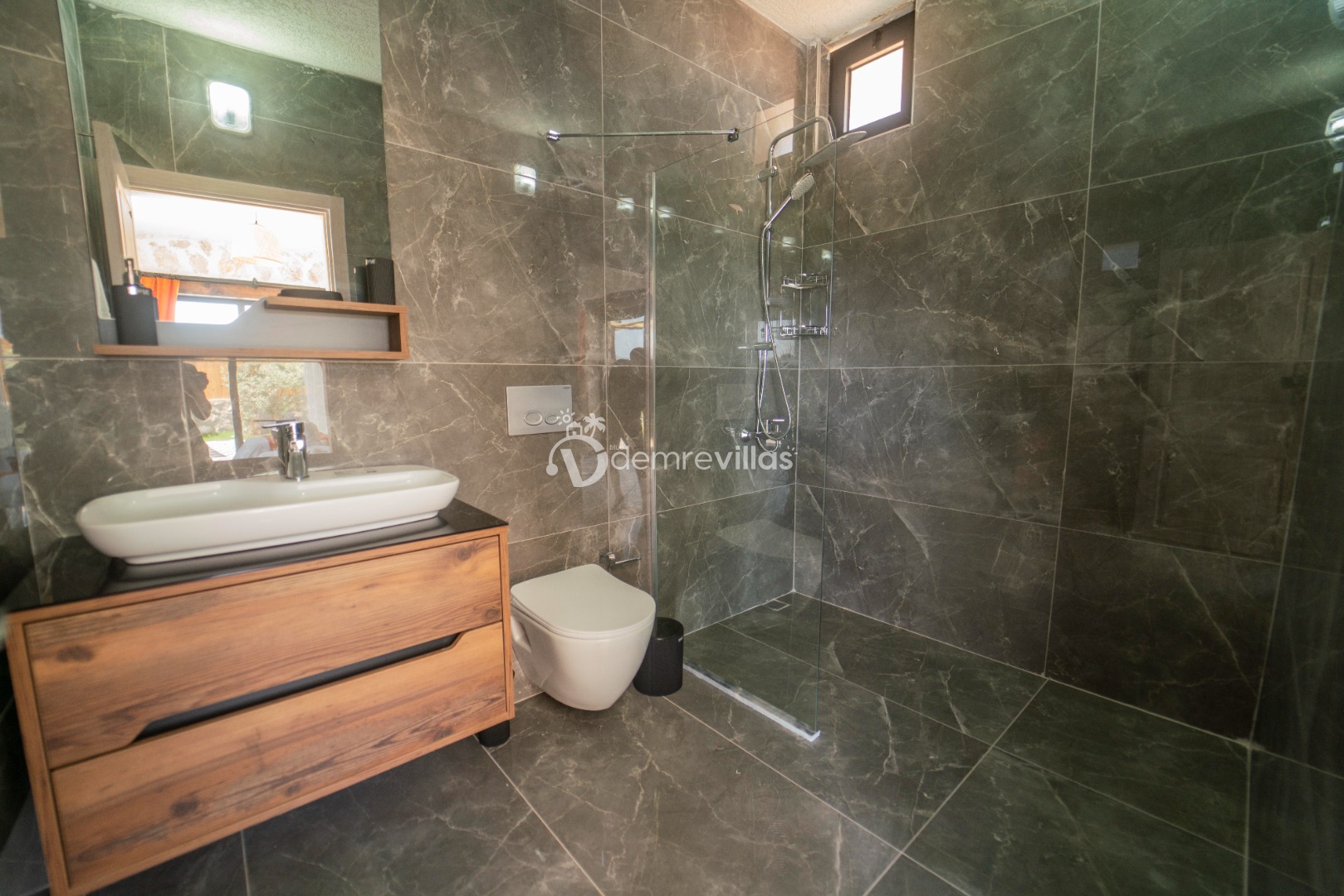Coğrafi yapısı bakımında dağlık bir alana sahip olan bölgemizdeki villalarımız genel olarak yamaç üzerine kuruludur. Bu nedenle villalarımıza giderken yokuş yukarı çıkılmaktadır. Bu not sadece bu villa ile ilgili değildir. Tüm villalarımızda yazmaktadır.