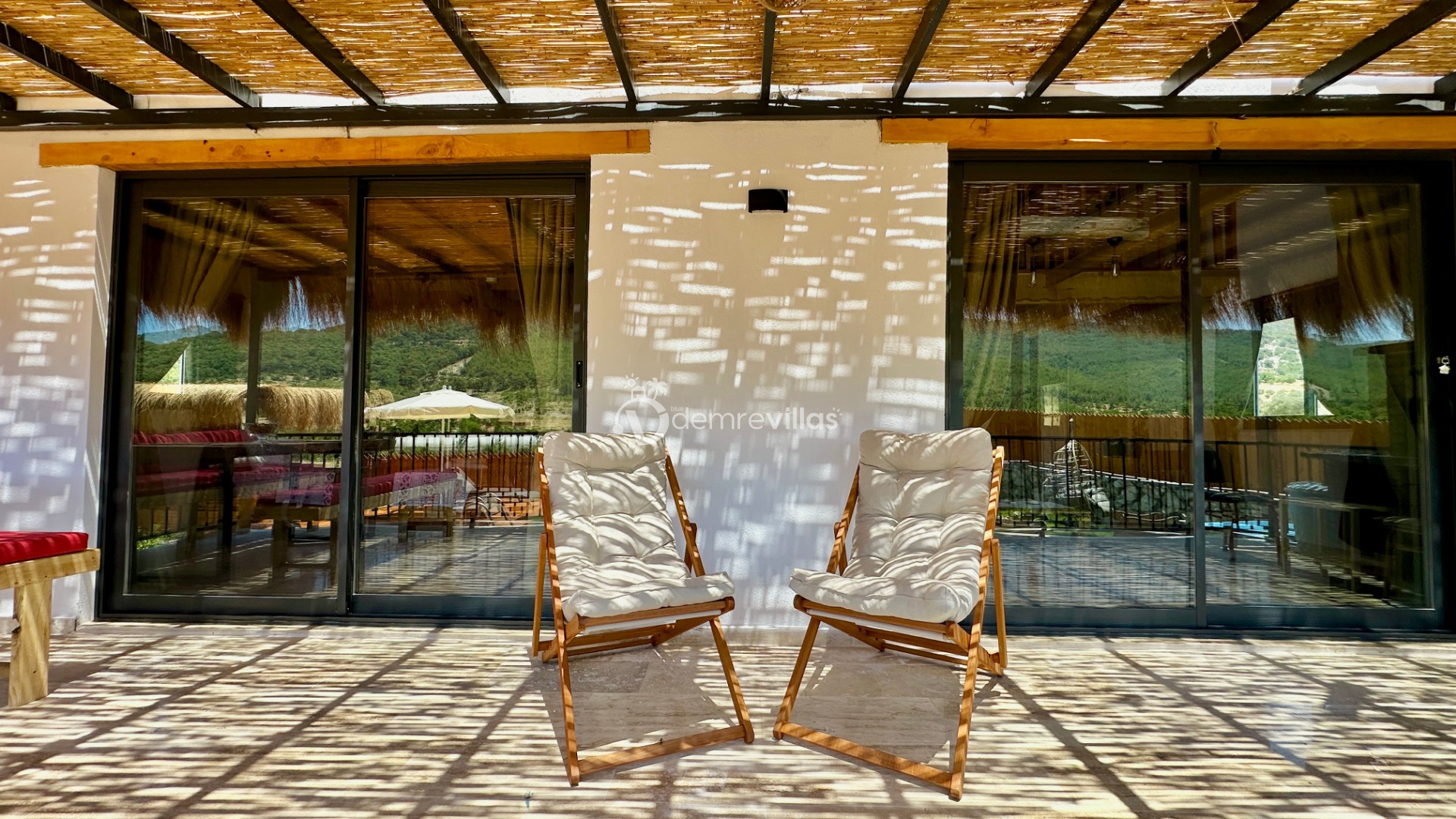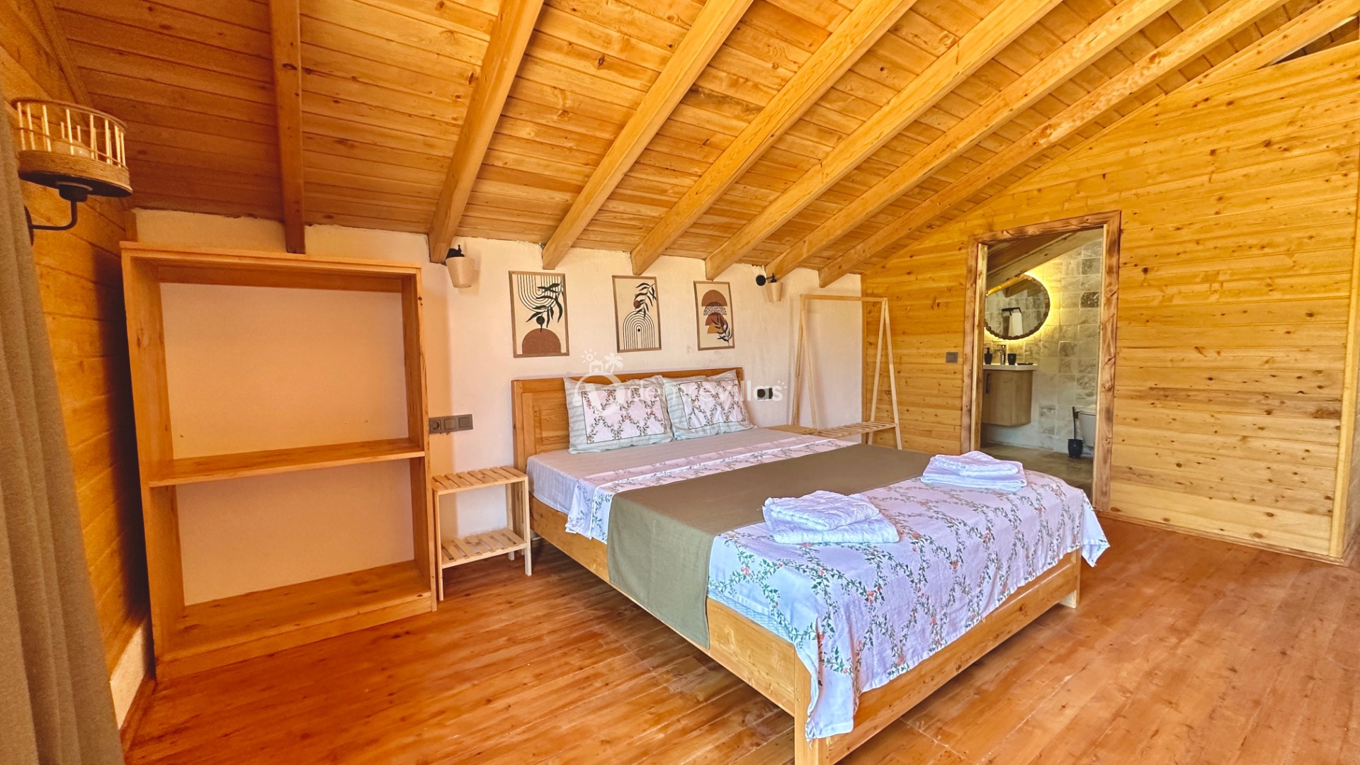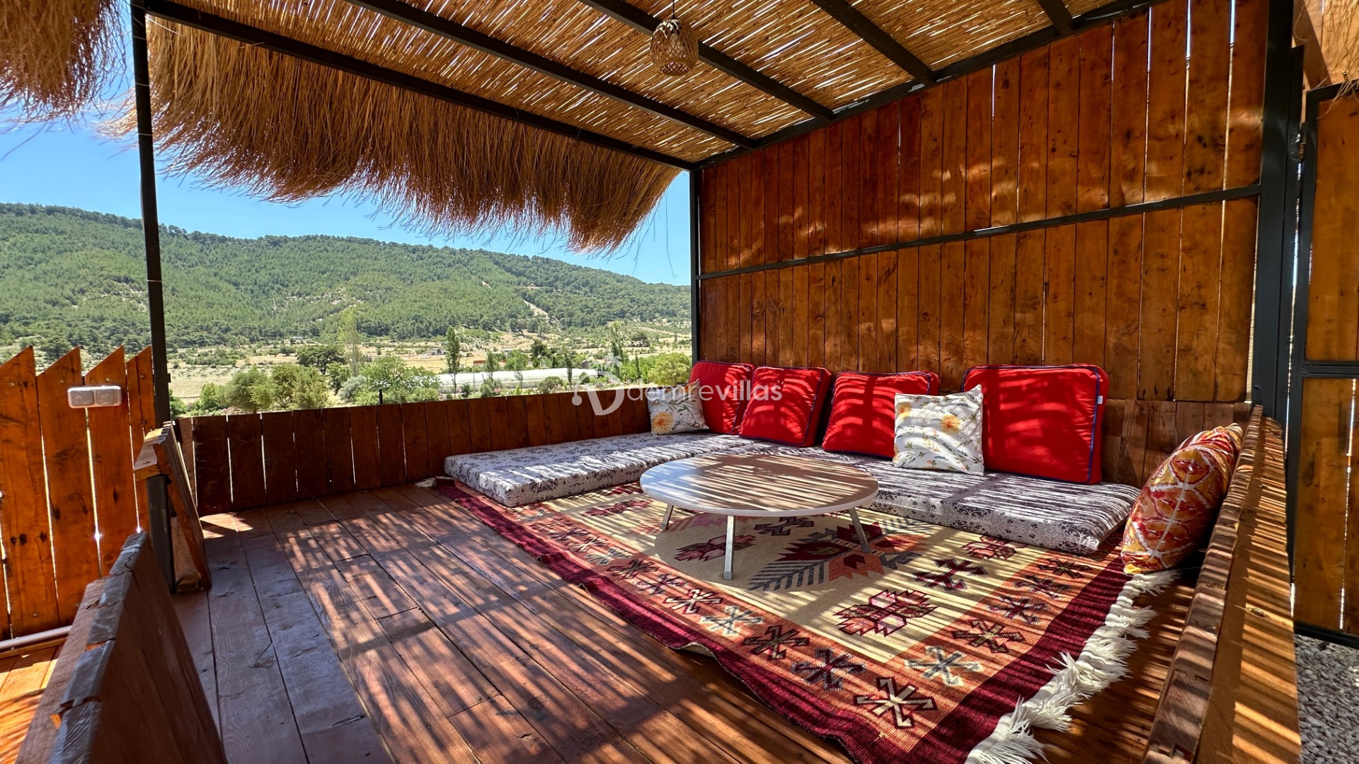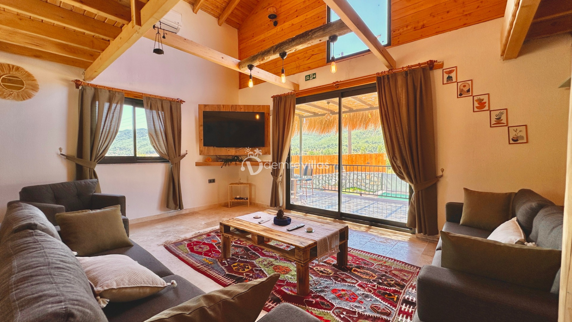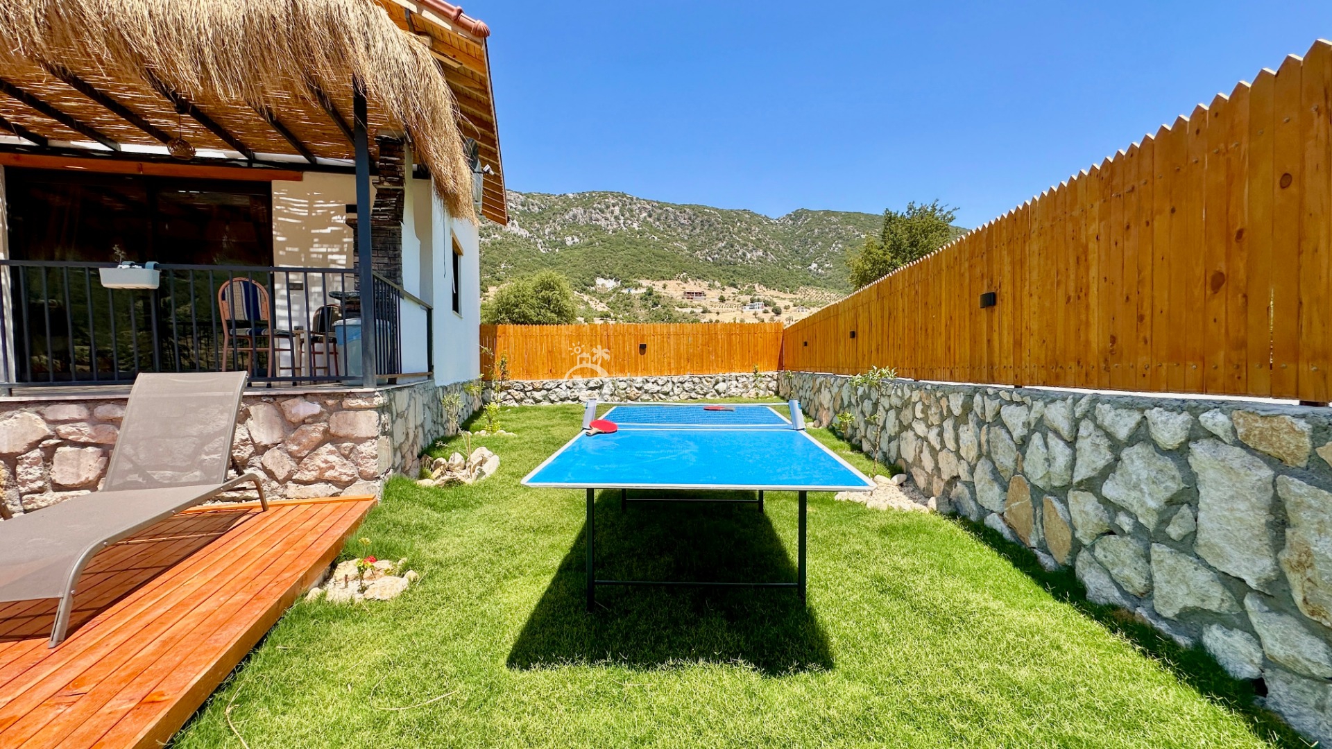 Kalkan'ın Sarıbelen mevkiinde, doğayla iç içe konumlanmış 2 yatak odalı ve 4 kişilik kapasiteye sahip bir kiralık villadır.