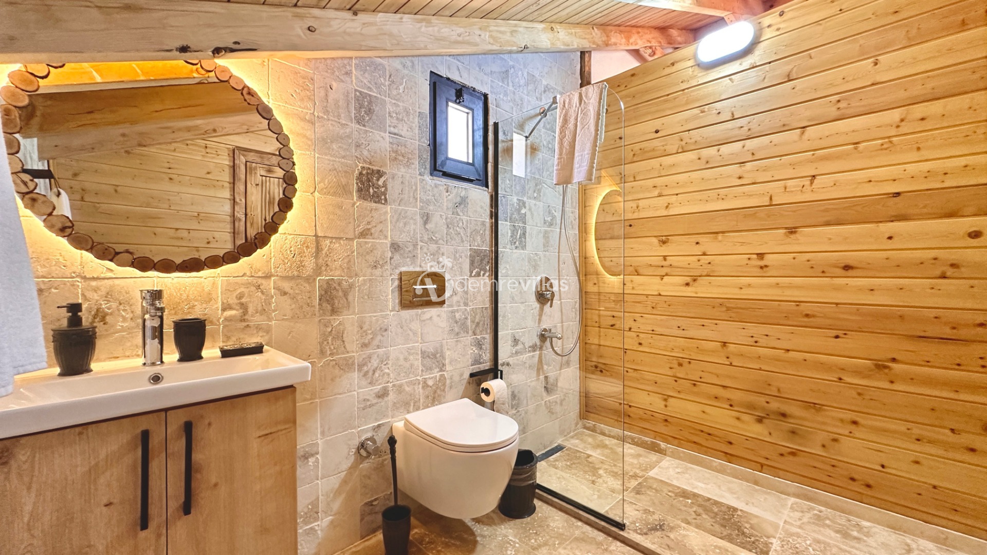 Coğrafi yapısı bakımında dağlık bir alana sahip olan bölgemizdeki villalarımız genel olarak yamaç üzerine kuruludur. Bu nedenle villalarımıza giderken yokuş yukarı çıkılmaktadır. Bu not sadece bu villa ile ilgili değildir. Tüm villalarımızda yazmaktadır.
