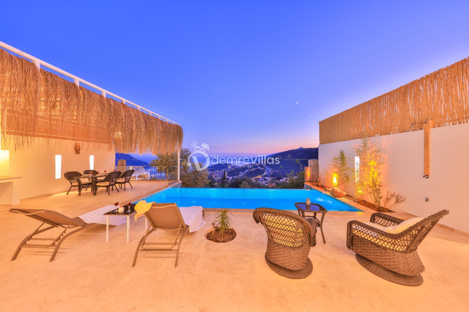 Kalkan Akbel bölgesinde yer alan, 2 kişi kapasiteli muhafazakar balayı villalarımız arasında yer almaktadır. Villamız 2 kişi kapasitesi ile genellikle balayı çiftleri ve muhafazakar aileleler tarafından tercih edilmektedir. Villamızın muhafazakar özelliklere sahip olması, havuz, teras ve bahçe alanının dışardan görünmesini engellemektedir. Bu sayede tatiliniz esnasında villanın havuz ve bahçe alanı dışarıdan görünmemektedir. Bu da ailenizle rahat bir tatil yapmanıza olanak sağlamaktadır.