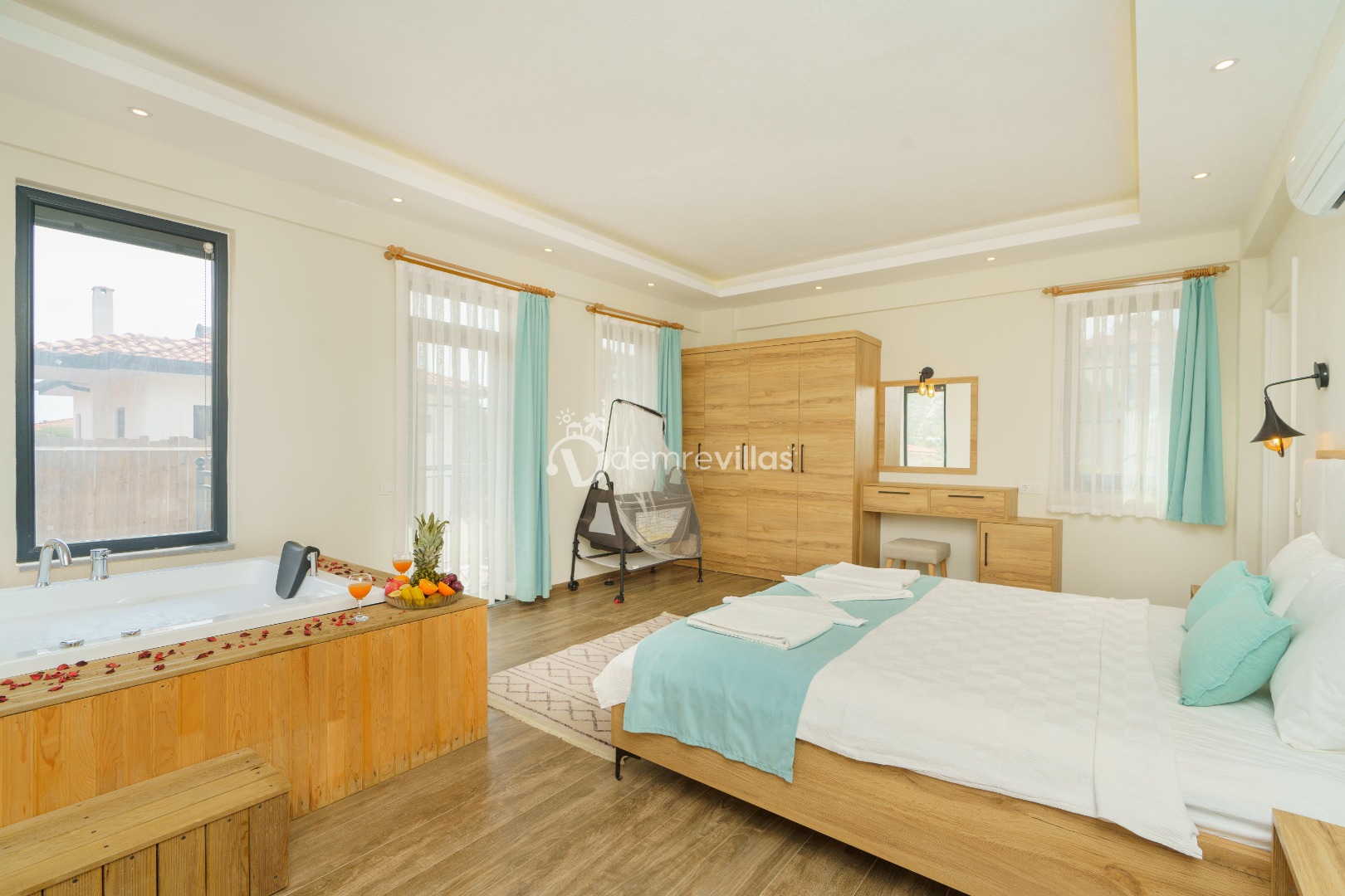 Balayı villaları ve jakuzili villalar kategorisindeki villamız geniş bir bahçeye sahip olup ana yatak odasında misafirimizin rahatlaması için jakuzili yer almaktadır. Patara merkeze yakın konumdaki villamızda, keyifli ve huzur dolu bir tatil sizleri bekliyor.