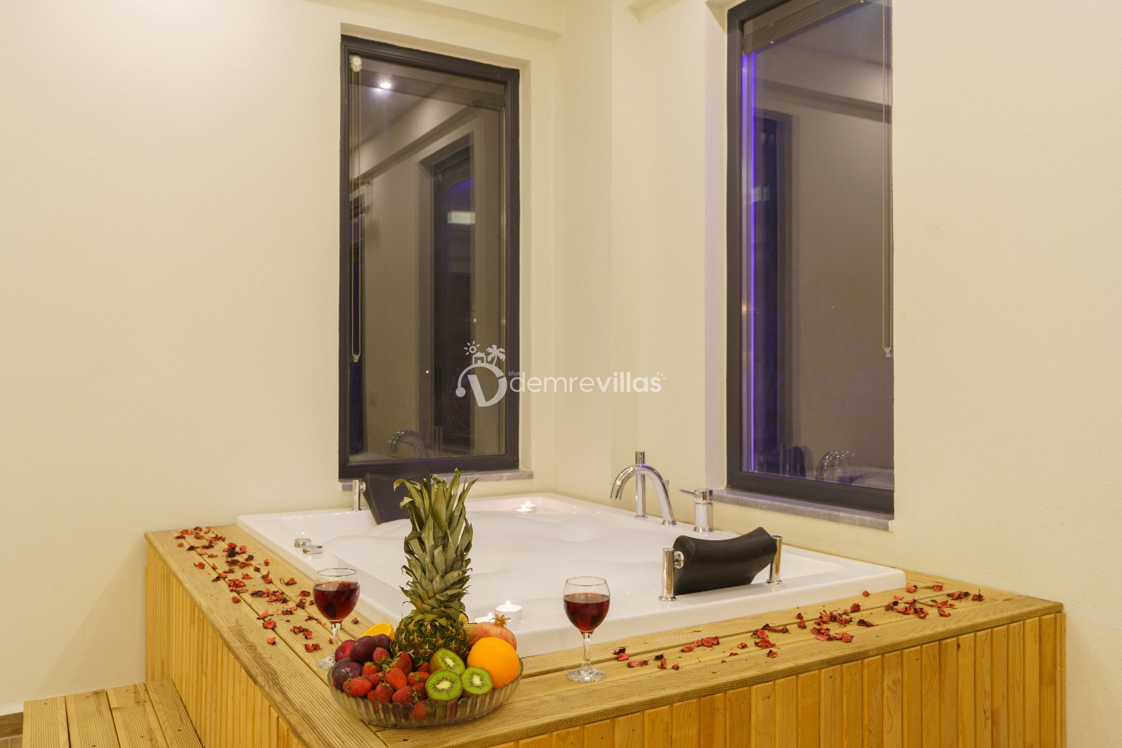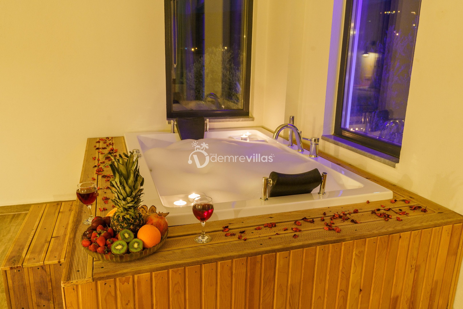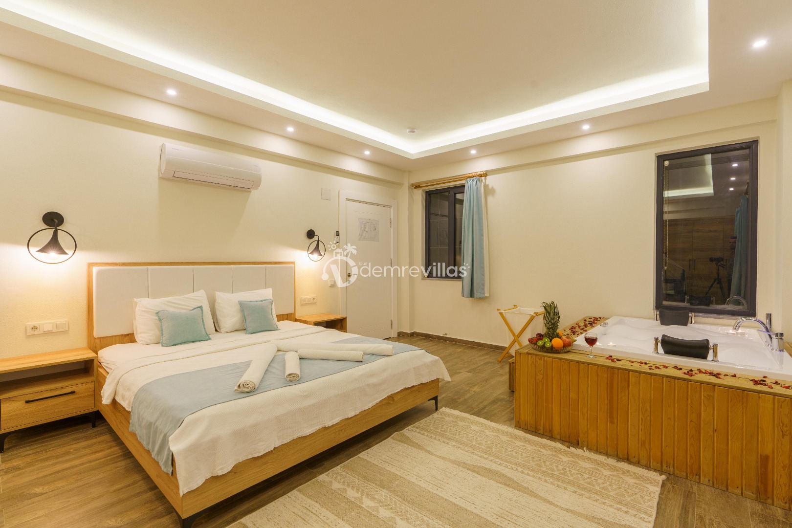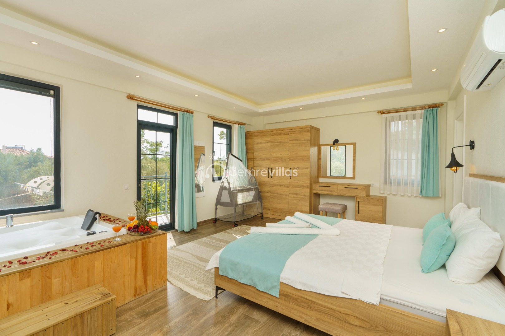 . Balayı villaları ve jakuzili villalar kategorisindeki villamız geniş bir bahçeye sahip olup ana yatak odasında misafirimizin rahatlaması için jakuzili yer almaktadır. Patara merkeze yakın konumdaki villamızda, keyifli ve huzur dolu bir tatil sizleri bekliyor.