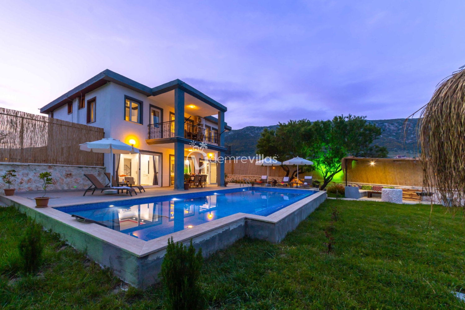Kalkan Sarıbelen Mevkii'nde bulunuyor. 4 yatak odası ile 8 kişilik konaklama kapasitesine sahiptir. Doğa ile iç içe, sessiz ve huzurlu bir tatil arayışında olan misafirlerimiz için eşsiz bir fırsat olan villamız oldukça şık dekore edilmiştir. Geniş bahçesi ve lüks dizaynıyla öne çıkan villamız, korunaklı havuzuyla muhafazakar aileler için ideal bir seçenektir.
