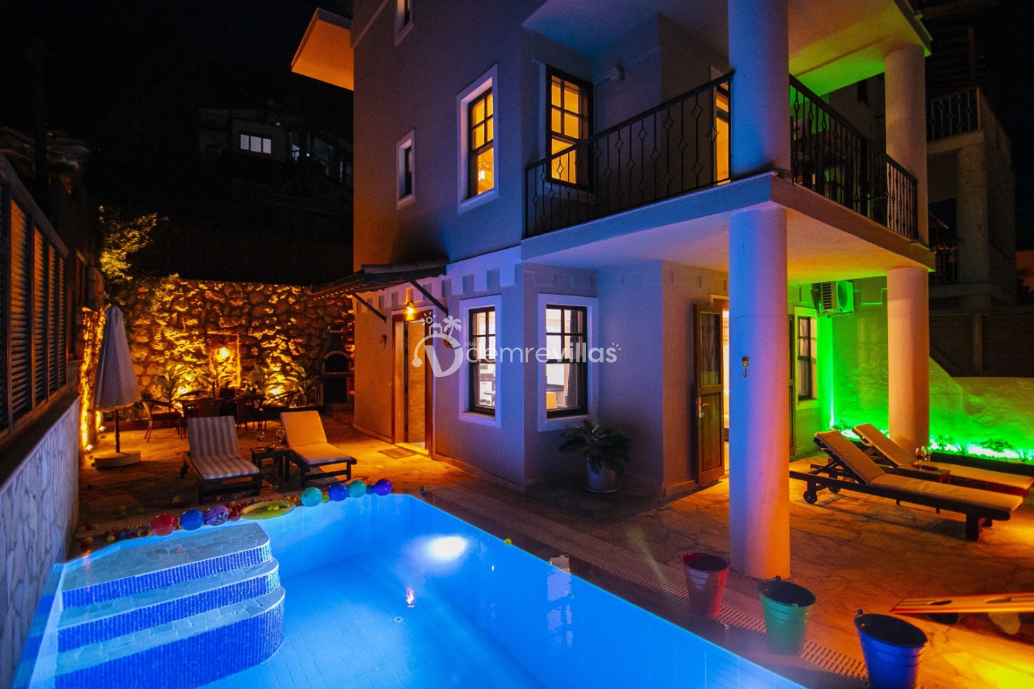 Kalkan Kızıltaş mevkiinde, kaliteli mimarisi ve konforlu mobilyalarıyla dikkat çeken özel havuzlu bir villadır.
