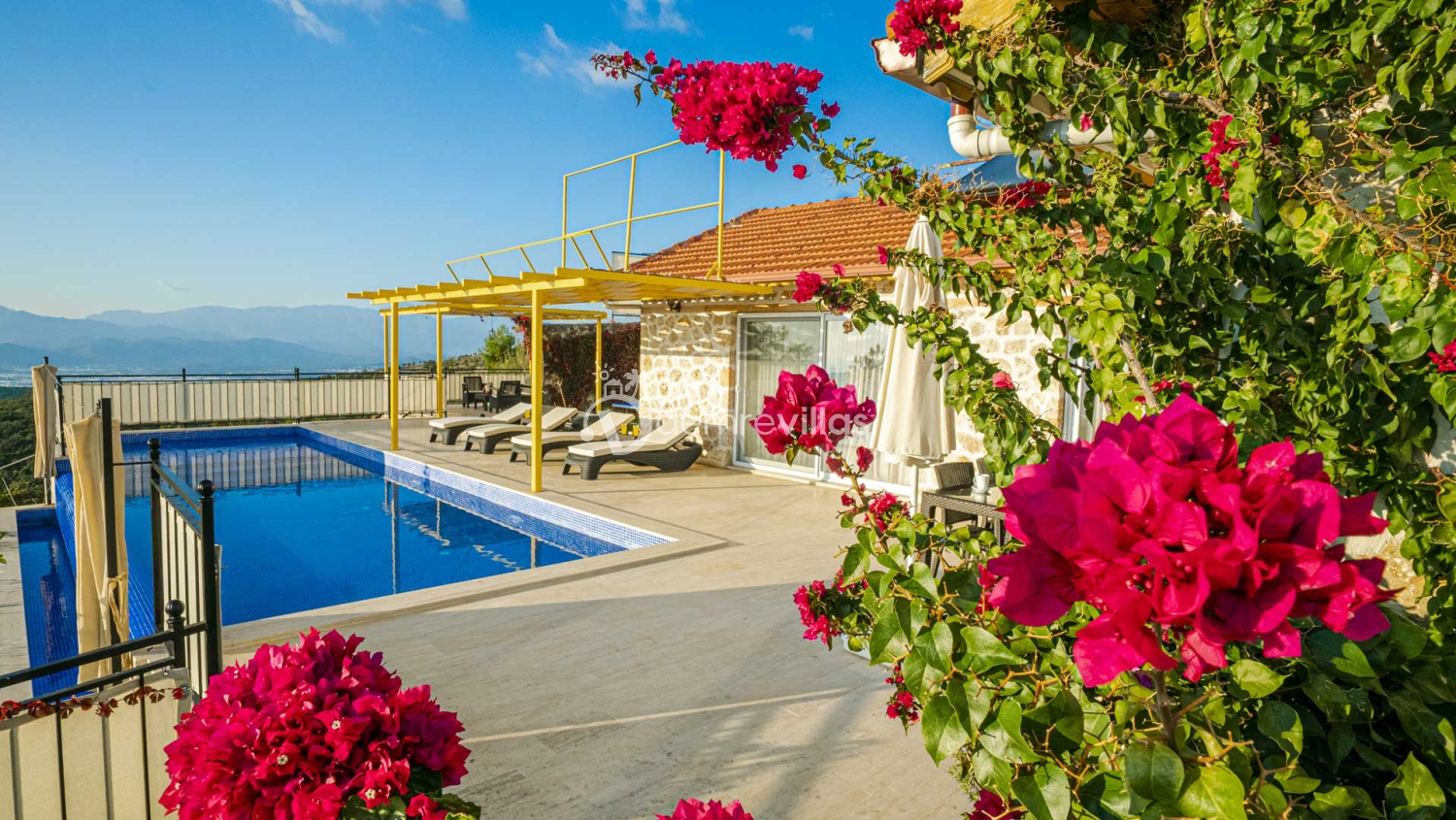 Coğrafi yapısı bakımında dağlık bir alana sahip olan bölgemizdeki villalarımız genel olarak yamaç üzerine kuruludur. Bu nedenle villalarımıza giderken yokuş yukarı çıkılmaktadır. Bu not sadece bu villa ile ilgili değildir. Tüm villalarımızda yazmaktadır.