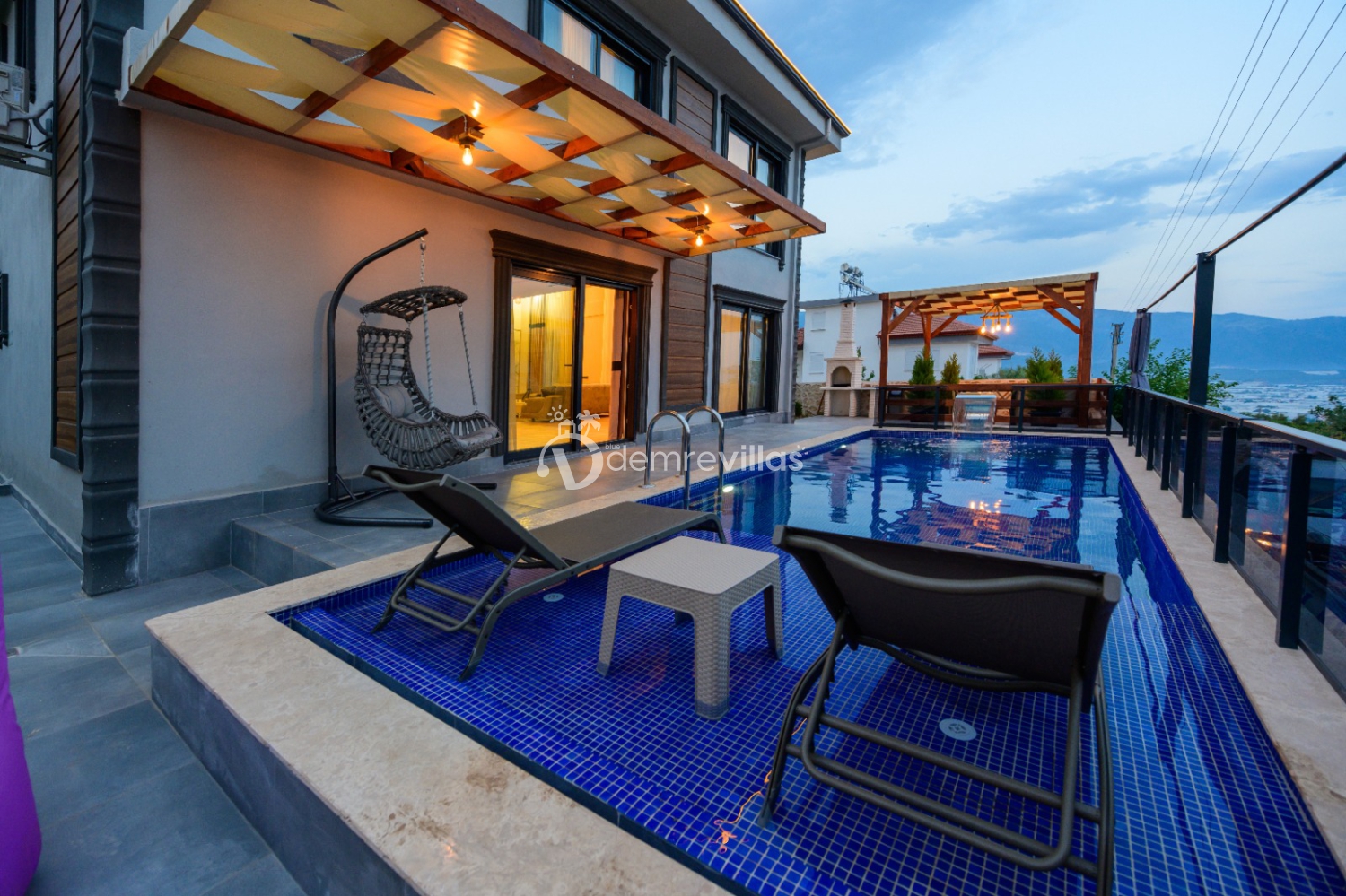 Antalya'nın tarihi ve doğal güzellikleriyle çevrili Demre bölgesinde bulunan, üç yatak odası ve altı kişi kapasiteli bir tatil villasıdır. Villamız, geniş aileler ve arkadaş grupları için ideal olup, sadece bir adet ebeveyn yatak odasında ebeveyn banyosu bulunmaktadır; diğer iki odanın banyosu ise ortak kullanım alanında yer alır. Korunaklı havuzu sayesinde, villada kalan misafirlerimiz mahremiyet içinde bir tatil geçirebilirler.