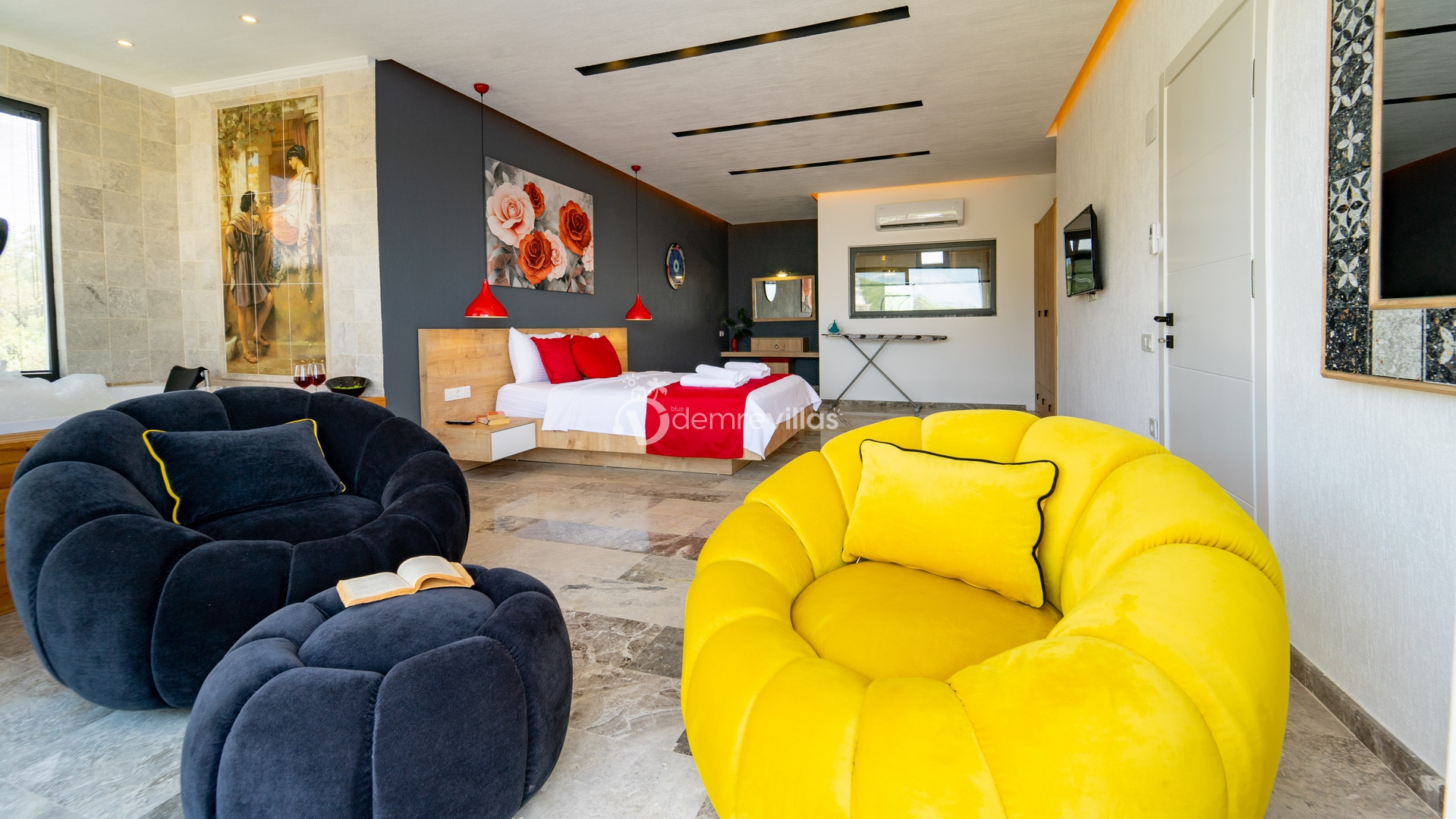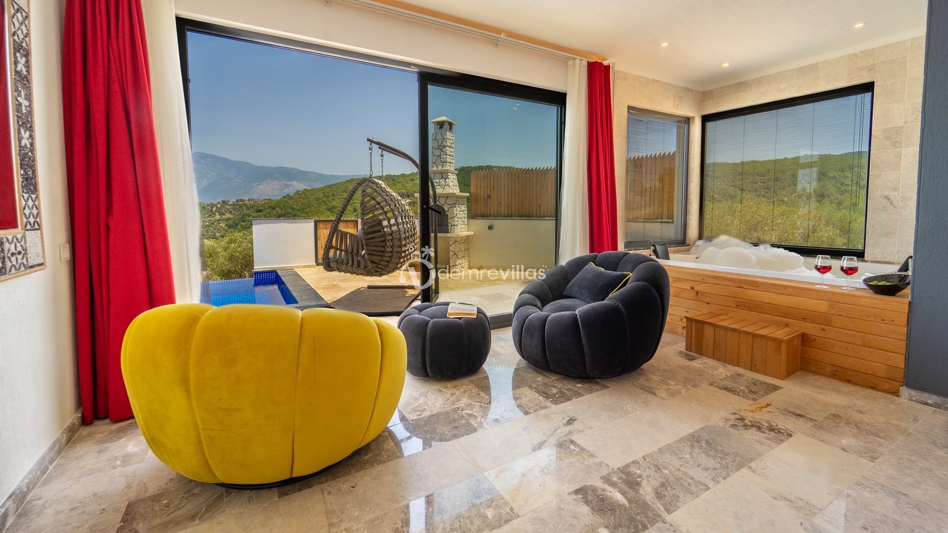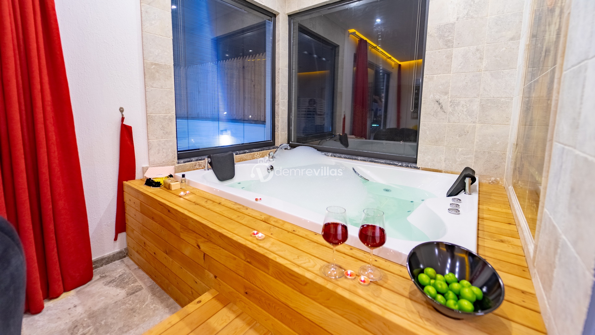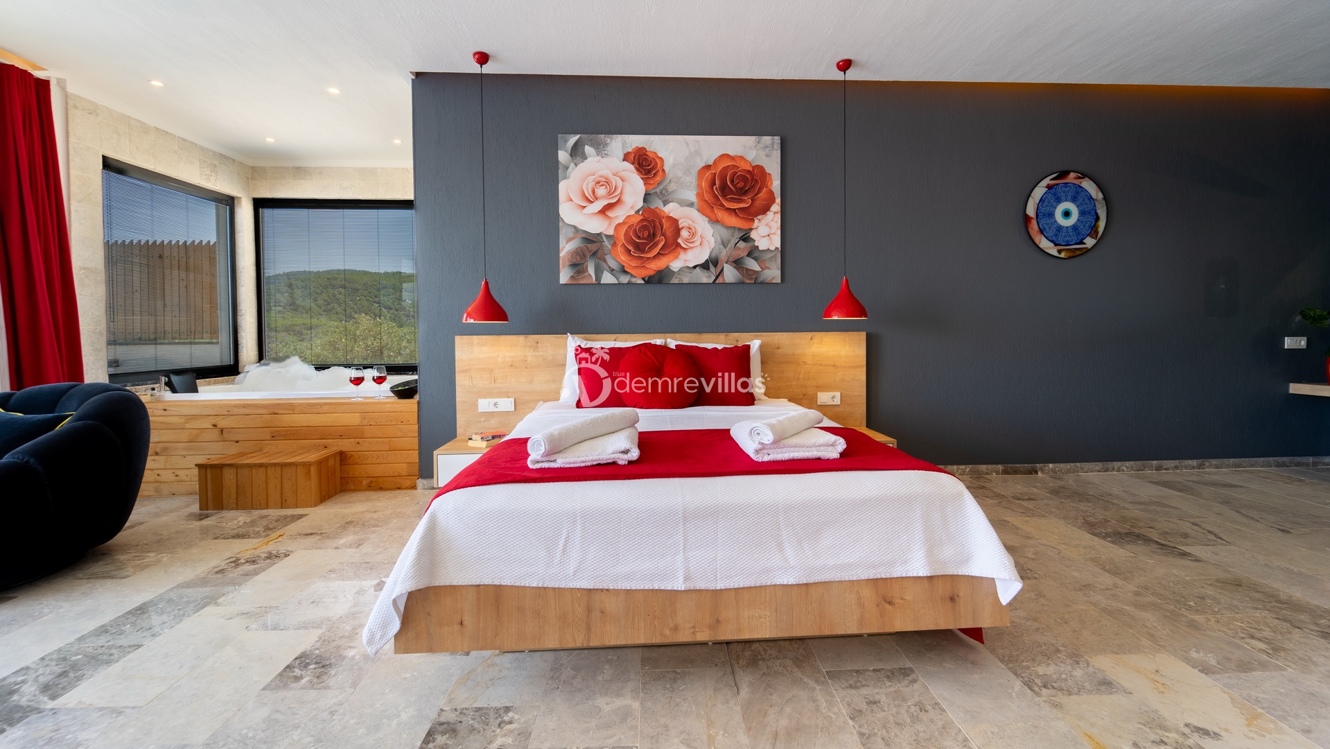 Doğa manzaralı villa,çiftlerimiz için huzur dolu bir tatil fırsatı sunuyor. Ayrıca yatak odasında misafirlerimizin rahatlaması için 2 kişilik jakuzi konforu da sağlamaktadır.