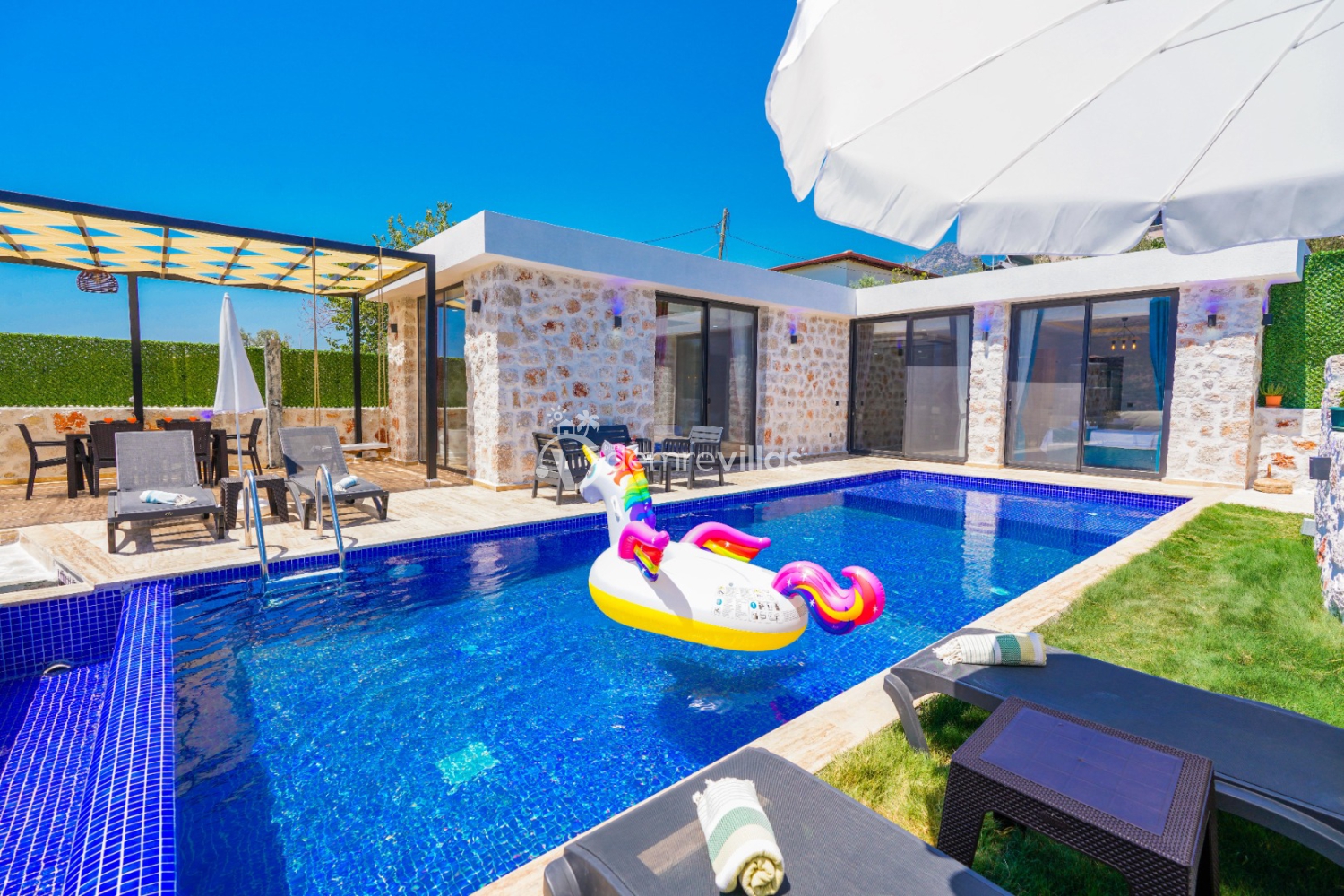 Kalkan'ın Ulugöl mevkisin de bulunmaktadır. 2 yatak odası ile 4 kişilik kapasiteye sahip olan villamız muhafazakar aileler ve balayı çiftlerimiz için gözlerden uzakta bir tatil arayışında olan misafirlerimiz için dizayn edilmiştir.