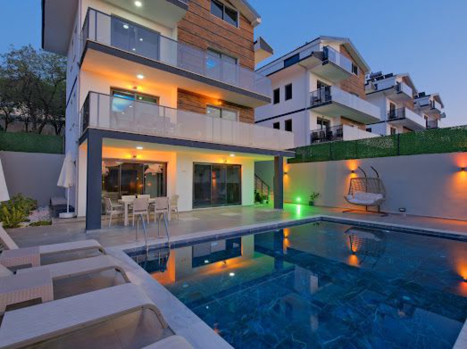 Toplam 4 yatak odası bulunan villamız 8 kişi konaklama kapasitesine sahiptir. Bahçe terasında özel yüzme havuzu, salıncak ve barbekü bulunan villamızda geniş aile ve arkadaş grupları keyifli ve konforlu bir tatil geçirme imkanına sahipler.