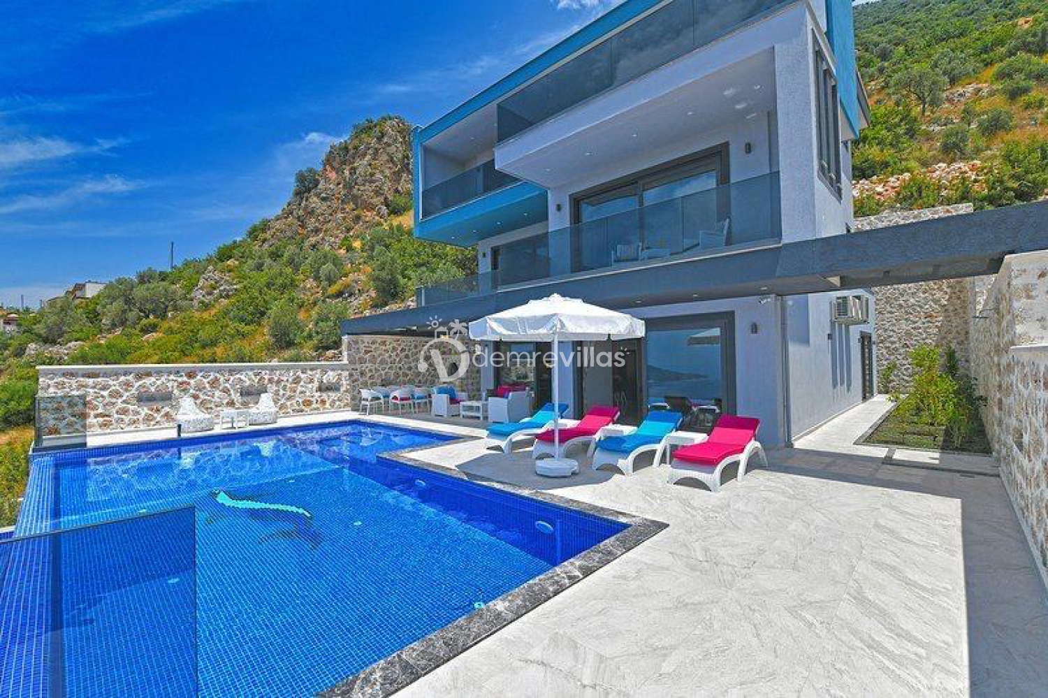Kalkan Kördere'de bulunan muhteşem tasarımıyla ve mükemmel konumuyla gördüğünüz anda büyüleneceğiniz bu özel villamız sizlere harika gün batımı şölenini tattırıyor. 3 suit yatak odası bulunan villamız tamamen bir otel konsepti üzerine dizayn edilmiştir. Ruhunuzu ve vücudunuzu dinlendirecek kapalı havuz,jakuzi, sauna , türk hamamı hepsi villamızda mevcuttur. Havuzun yer aldığı ana terasta özel bir oturma alanı bulunmaktadır ve dış şömine tarzında mangal yapabileceğiniz eşsiz bir alan sunulmaktadır. Bu sayede daha rahat, huzurlu bir bahçe keyfi elde etmeniz sağlanmaktadır. Daha geniş, konforlu bir ortam elde etmeniz adına bahçeli olarak tasarlanmıştır. Bu sayede hem havuzun hem de bahçenin tadını tatiliniz süresince çıkarabilir, doğayı en özel haliyle hissedebilirsiniz. Havuzu ve bahçesi dışarıdan görünmeyecek şekilde inşa edilmiştir. Bu özelliği ile muhafazakâr ailelere de hitap etmektedir. Sevdiklerinizle keyifli dakikalar geçirip unutamayacağınız anılar biriktirebilirsiniz.