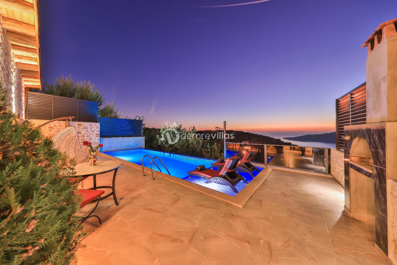 Kalkan Sarnıçbaşı bölgesinde bir kiralık villa. Doğa ile iç içe olup aynı zamanda deniz manzarasına sahiptir. 2 kişilik olan villa balayı çiftlerinin favorileri arasında. Korunaklı havuz bulunan villanın yatak odasında bir de jakuzi mevcut. Muhafazakar veya gözlerden uzak tatil planlayan misafirlerimiz için oldukça ideal. Villa içinde ayrıca küçük bir sauna da mevcut.