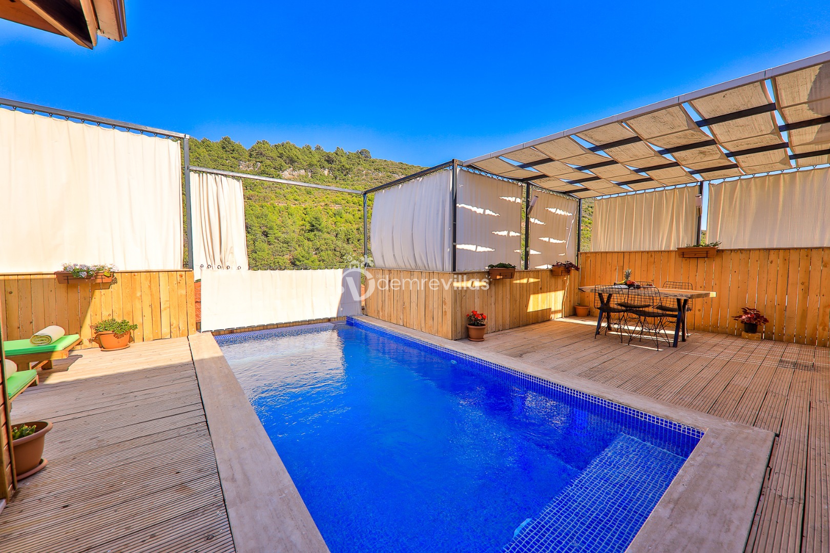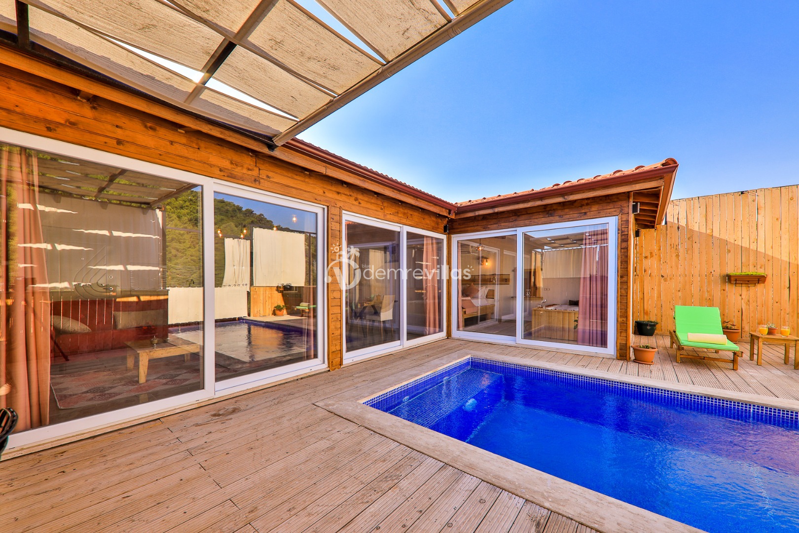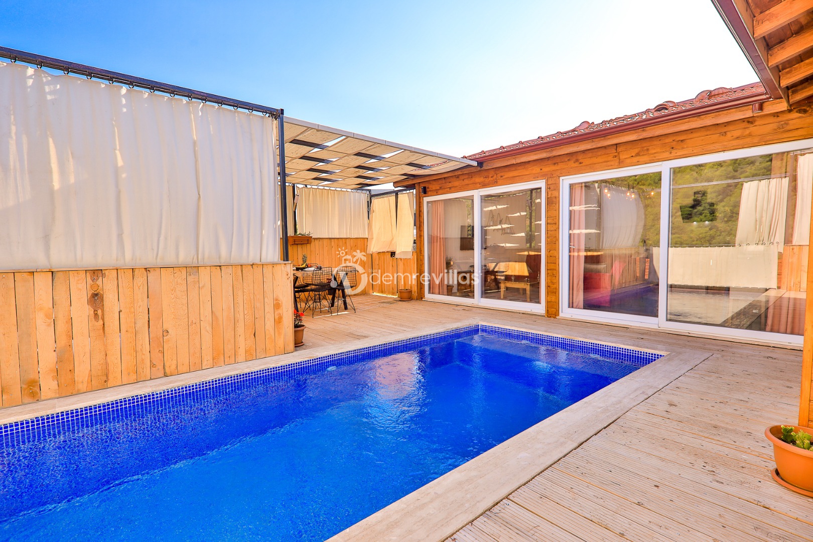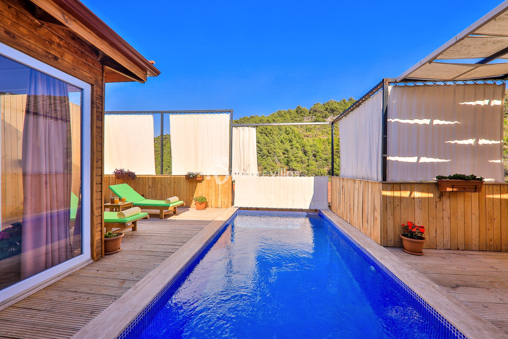 Geniş ve ferah havuz terasıyla dikkatleri üzerine çeken villamızın havuzu korunaklı olup dışarıdan gözükmemektedir.
