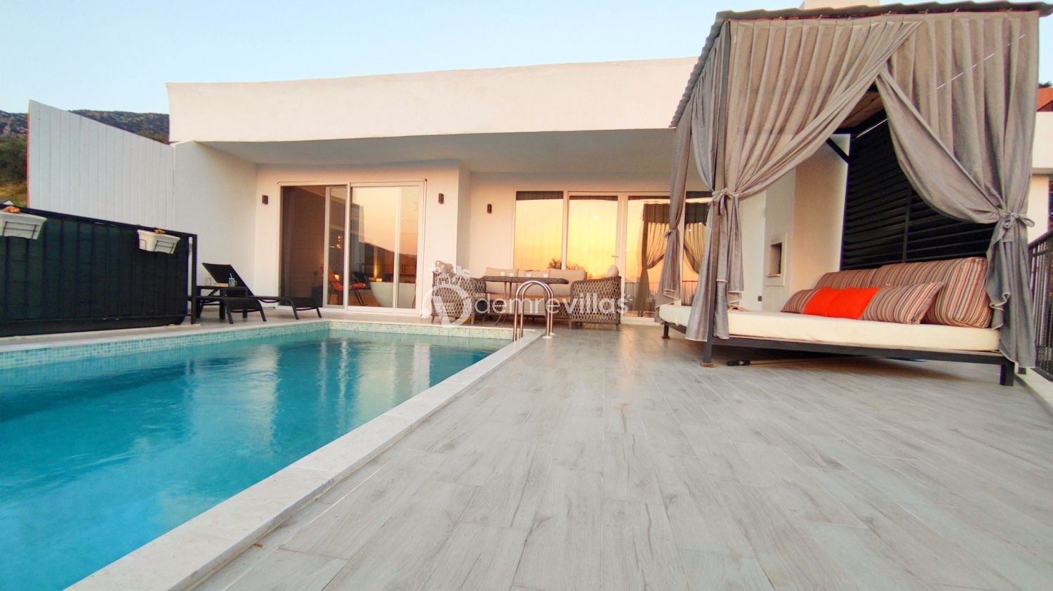 Kalkan Akbel Mevkii'nde bulunan lüks villamızdır. Doğa içinden dünyaca ünlü patara antik kenti plajlarını görmektedir. Muhteşem bir günbatımı manzarasına sahiptir. Havuz terasıa koltuk takımı, barbekü, maximum boy dinlenme ve keyif yatağı(day-bed) bulunur. Havuzu infinity denilen sonsuzluk havuzu şeklinde içine girince denizle bütünleşen bir görüntü verir.
