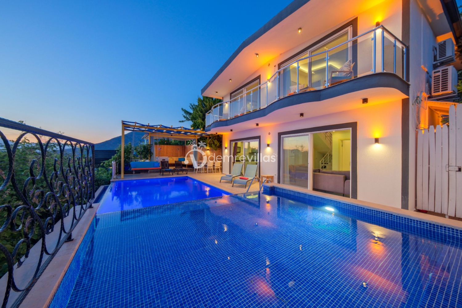 Kalkan'ın Üzümlü mevkiinde konumlandırılan 3 yatak odasıyla 6 kişilik konaklama kapasitesi sunan villamız korunaklı tatil villası olarak hizmet vermektedir.Bu muhteşem üç yatak odalı villa, doğa manzarasıyla çevrili huzurlu bir ortamda, altı kişilik konaklama kapasitesine sahiptir. Geniş ve aydınlık odaları konfor sunar. Korunaklı havuz alanında, gün boyunca güneşin tadını çıkarabilir veya jakuzi keyfi yapabilirsiniz.