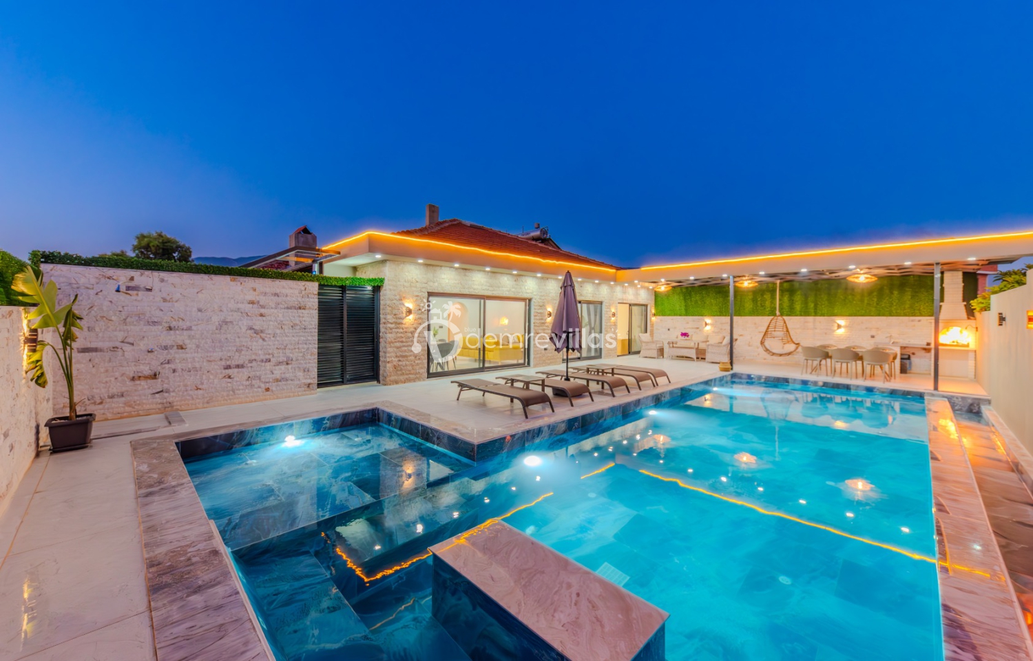 Villamız, Kalkan Kınık bölgesinde konumlanmış 3 yatak odalı 6 kişi konaklama kapasiteli korunaklı özel havuzlu lüks tatil villasıdır. Saunalı ve çift jakuzili villamızın yapımı 2024 yılında tamamlanmış olup şık ve modern dekorasyonu ile dikkat çekmektedir. Villamızın havuzu korunaklı olup, kalabalık aileler, çekirdek aileler ve balayı çiftlerimiz için uygun bir seçenektir. Villamızda bulunan sauna ve 2 yatak odasındaki jakuzisiyle bütün yılın stresini, yorgunluğunu üzerinizden atabilirsiniz. Villamız, muhafazakar konseptteki korunaklı havuzu ile, gözlerden uzak bir tatil geçirmek isteyen misafirlerini beklemektedir.