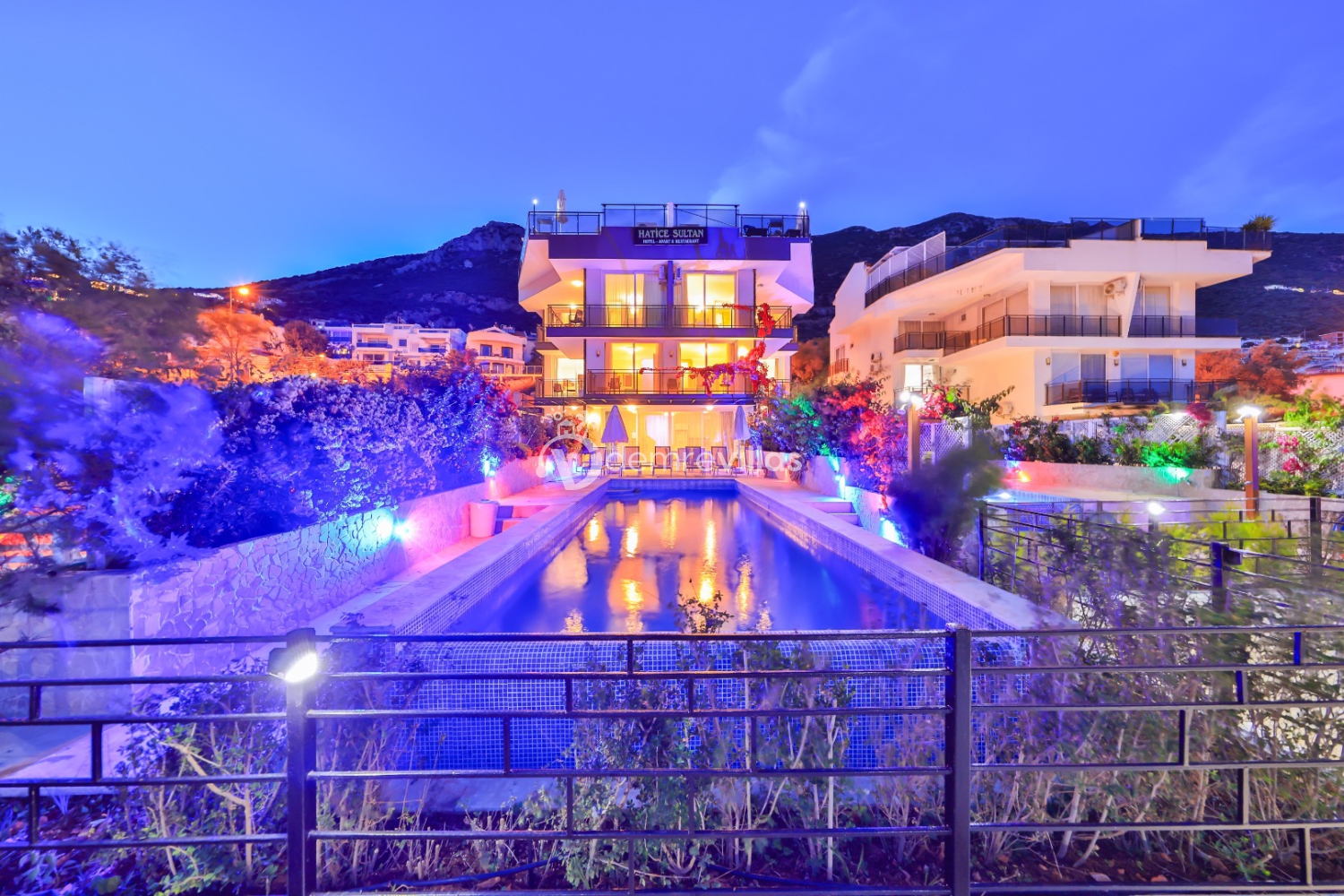 Villanın bahçesinde özel yüzme havuzu, şezlonglar, şemsiye, barbekü ve yemek masası takımı bulunmaktadır. Geniş terası sayesinde gün batımının keyfini çıkarabilir, havuz başında huzurlu anlar yaşayabilirsiniz. Merkezi konumuyla dikkat çeken villa, Kalkan şehir merkezine yalnızca 800 metre, en yakın plaja ise 2 km mesafededir. Bu sayede hem doğanın içinde huzurlu bir tatil geçirebilir hem de Kalkan’ın restoranları, kafeleri ve çarşısına kolayca ulaşabilirsiniz.