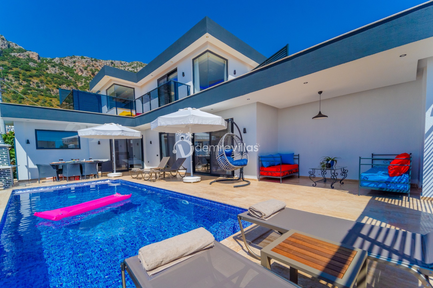Kalkan mahallesinin Kördere mevkisinde konumlanmıştır. Villamız, özel yüzme havuzuna sahip olup, havuz terası yabancı gözlerden uzak muhafazakar bir villadır. Villamızın havuz terasında çocuk havuzu da bulunmaktadır. Kalkan merkeze, 4 km mesafededir.
