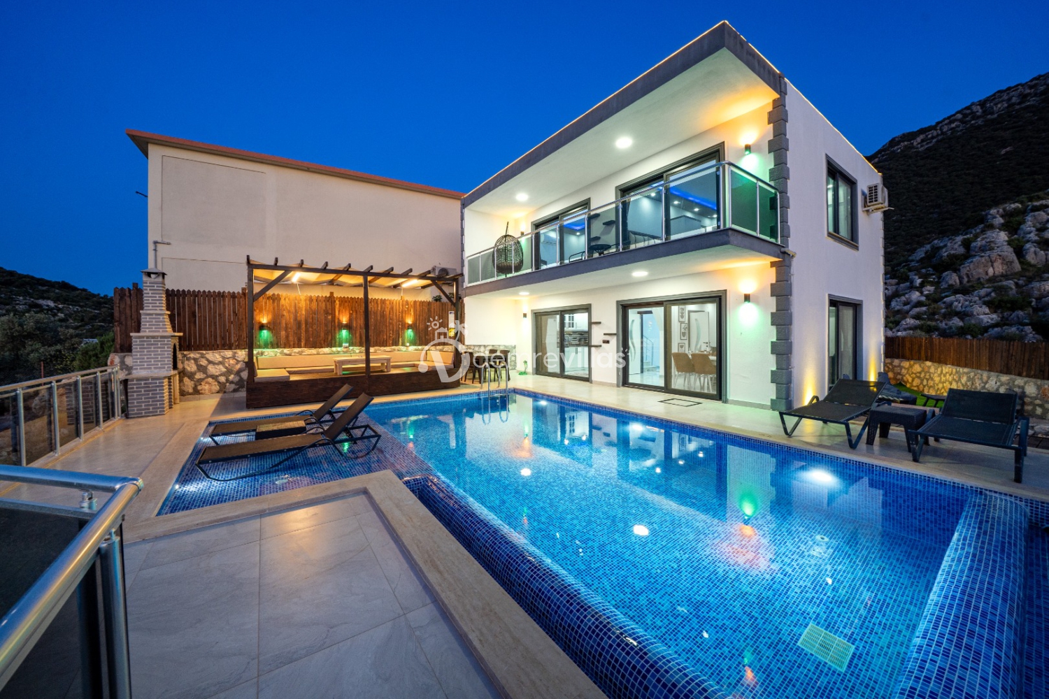 Kalkan’ın Bayındır bölgesinde yer alan villamız, 2 katlı modern ve lüks olarak tasarlanmıştır. 2 yatak odası ve 2 banyosu, özel yüzme havuzu, jakuzisi olan villamız, aynı anda 4 kişiyi en güzel şekilde ağırlamaktadır. Villamız, geniş ve ferah bir yaşam alanı sunmaktadır. Salon ve mutfak, modern bir tasarımla birleştirilmiştir ve tamamen cam duvarlarla kaplanmıştır. Villamız, sadece mükemmel iç mekanı ve dış mekanı ile değil, aynı zamanda lokasyonuyla da dikkat çekmektedir. Villamızın yer aldığı bölge, sessiz ve sakin bir mahalledir. Sadece kısa bir yürüyüş mesafesinde, Kalkan’ın hareketli merkezine ulaşmak mümkündür. Villamızın konforu, deniz manzarası ve muhteşem özellikleri, unutulmaz bir tatil deneyimi için gereken tüm unsurları size sunmaktadır.