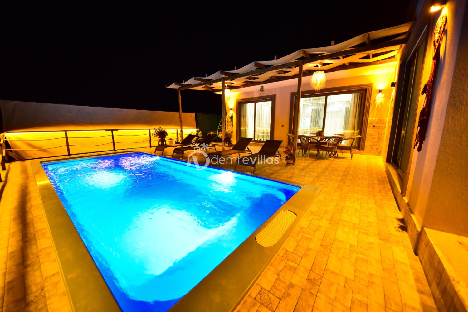 Antalya Demre-Gürses mevkiinde bulunan 4 kişilik villamız balayı çiftlerinin ve çekirdek ailelerin tercih edebileceği her bir detayın en ince ayrıntısına kadar düşünüldüğü 2 yatak odası ile 4 kişilik konaklama kapasitesine sahip muhafazakar tatil villamızdır. Villamızda çocuk havuzu ve bir adet jakuzisi vardır.