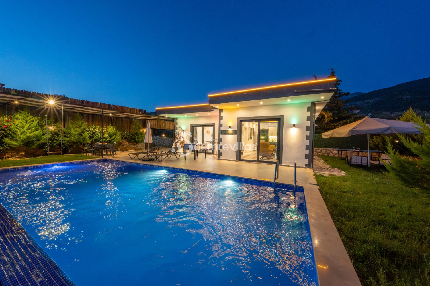Villamız, Kalkan Çavdır mevkiinde konumlanmakta olan doğa manzarasına hakim kiralık villalarımız arasında yer almaktadır. Şık ve konforlu bir şekilde dizayn edilen yazlık villamızda 1 adet yatak odası bulunmakta olup, 2 kişiye konaklama imkanı sağlamaktadır. Yatak odasının içerisinde tüm yılın yorgunluğunu atabileceğiniz jakuzi yer almaktadır. Havuz ve havuz terası korunaklı bir hale getirilmiştir. Dışarıdan bir kimse tarafından görünmemektedir. Dış özel yüzme havuzuna entegre sığ havuz yer almaktadır. Muhafazakar balayı çiftleri ve çekirdek aileler rahatlıkla tercih edebilirler. Havuz terasında muhteşem çam ağaçların karşıladığı doğa içerisinde sessiz ve keyifli bir tatil için villamızı tercih edebilirsiniz.