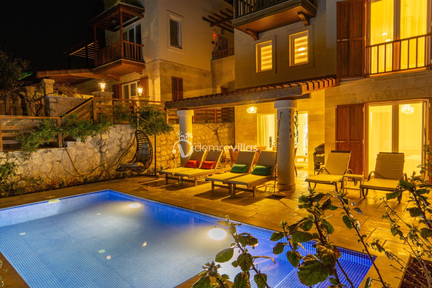 Kaş Kalkan'da Doğa İçinde konumlanmış 6 kişilik Kiralık Tatil Villasıdır.Tatil Villamızın 3 yatak odası bulunmaktadır. Kiralık Tatil Villamızın havuz ve havuz çevresi olup, tatil arayışında olan değerli misafirlerimiz için ideal eşsiz bir tatil imkanı sunuyor. Villamızın geniş bahçesinde; şezlonglar ve salıncak bulunur. Doğanın içinde, sessiz ve huzurlu bir villa tatili için Kiralık Tatil Villamız , siz misafirlermizi beklemektedir.