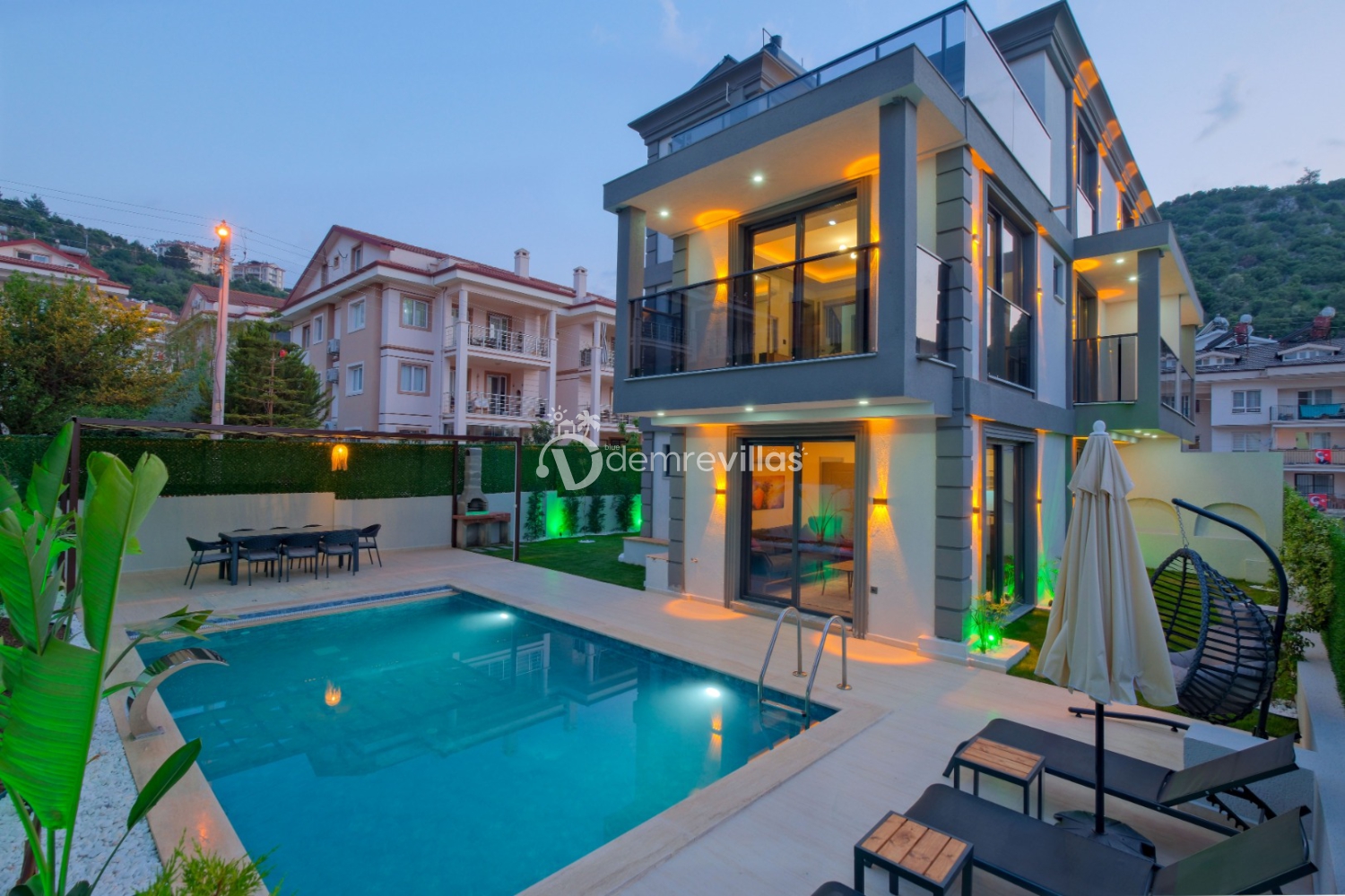 Fethiye merkez Patlangıç'da konumlanan, 6 kişilik konaklama kapasitesine sahip lüks bir tatil villasıdır. Geniş aileler için ideal olan villamız, özel yüzme havuzu, bakımlı geniş bahçesi ve modern tasarımıyla konforlu bir tatil sunar.